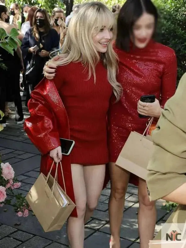 Sabrina Carpenter NYFW Red Leather Coat ‐ Female / S