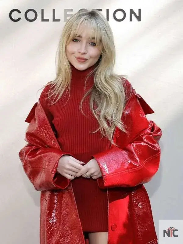 Sabrina Carpenter NYFW Red Leather Coat ‐ Female / 4XL