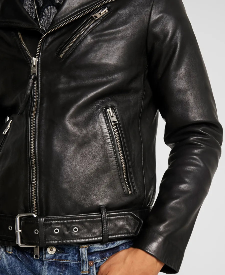 Shumack Black Biker Leather Jacket ‐ S / Male