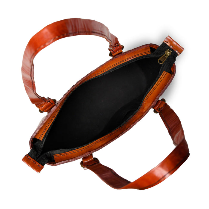 Solid Structure Tan Leather Mini Tote