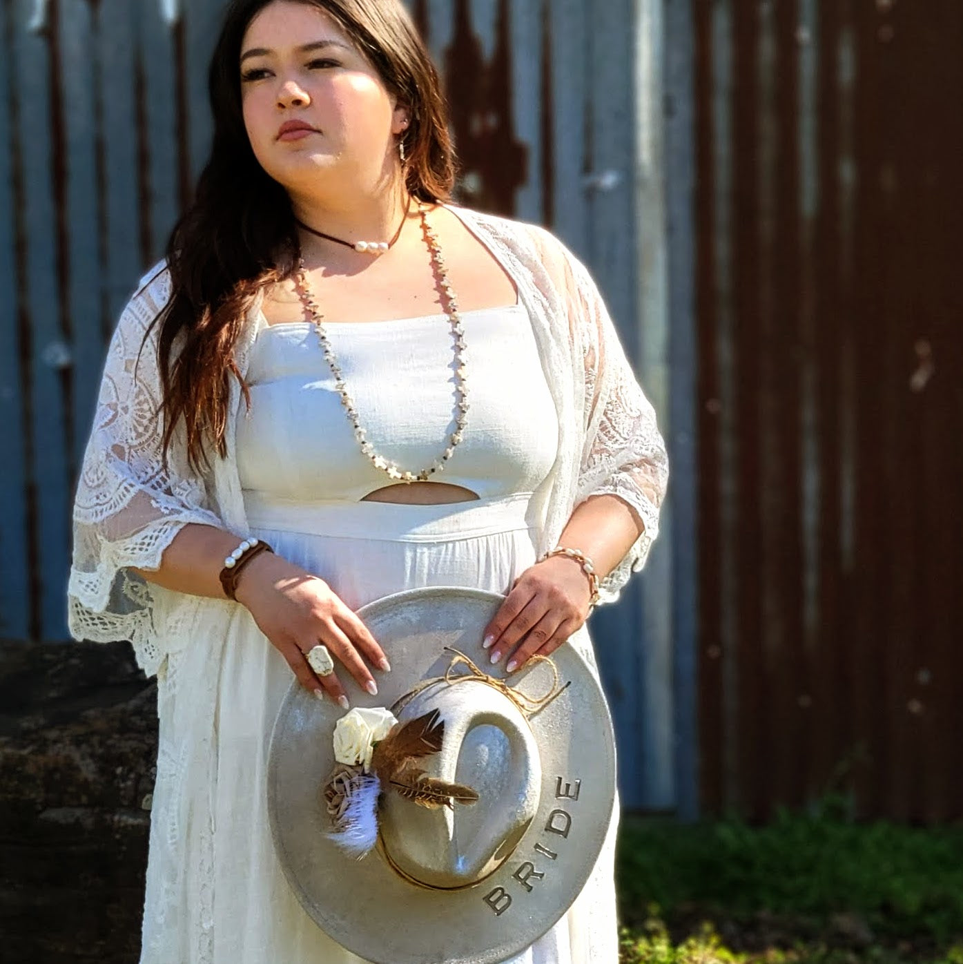 This handmade choker features three white, freshwater pearls on a genuine piece of dark brown leather. The contrast between the white of the pearls and the leather makes it a necklace that offers endless possibilities. Whether you choose to wear it as a standalone piece, layer it with longer necklaces, pair it with turquoise jewelry, or wear it casually with a t-shirt, you can guarantee it’s going to look great.