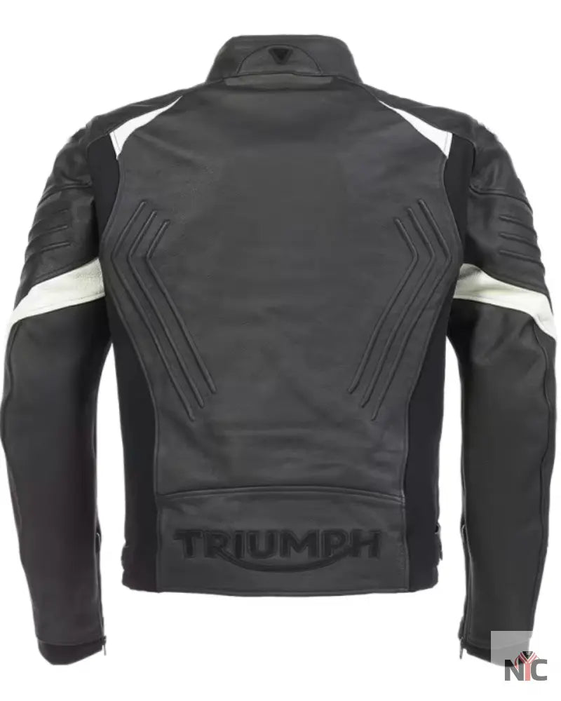 Triumph Triple Black Leather Motorcycle Jacket ‐ Male / M
