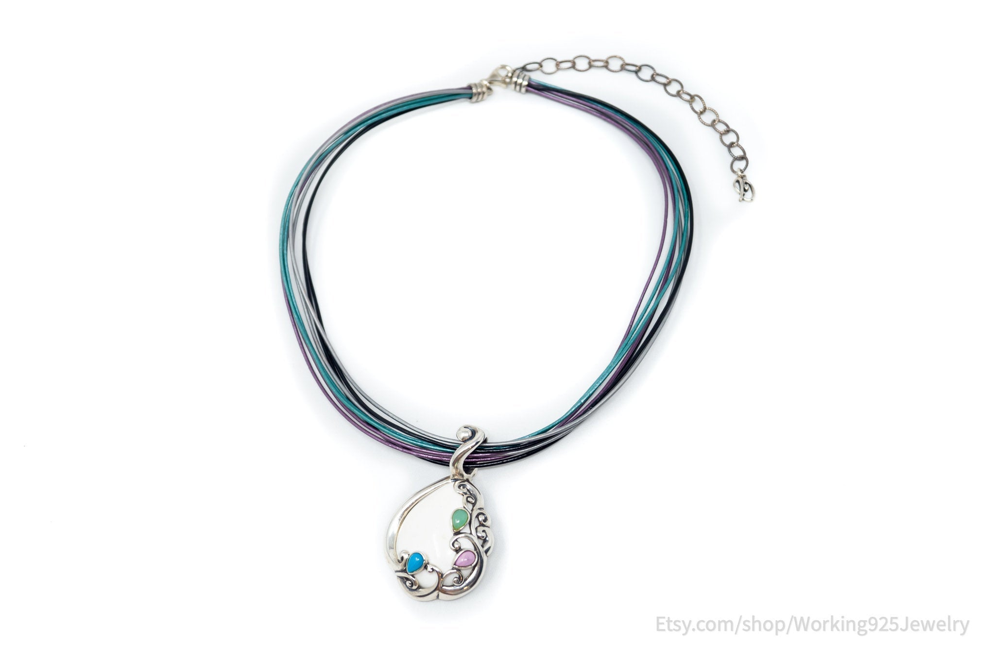Vintage Designer Carolyn Pollack Relios Leather Sterling Silver Necklace