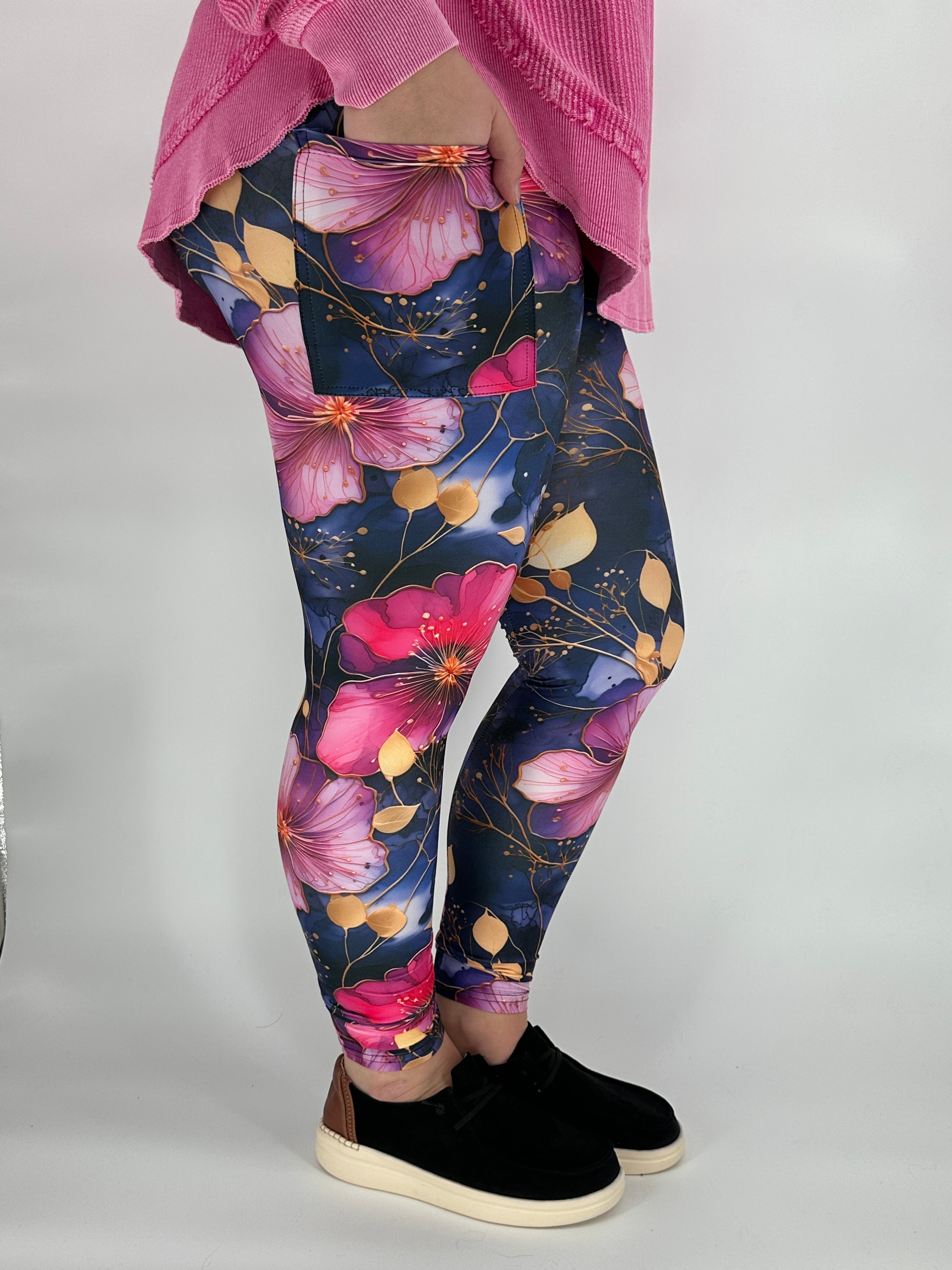 Alcohol Floral Leggings w/ Pockets! ‐ OS