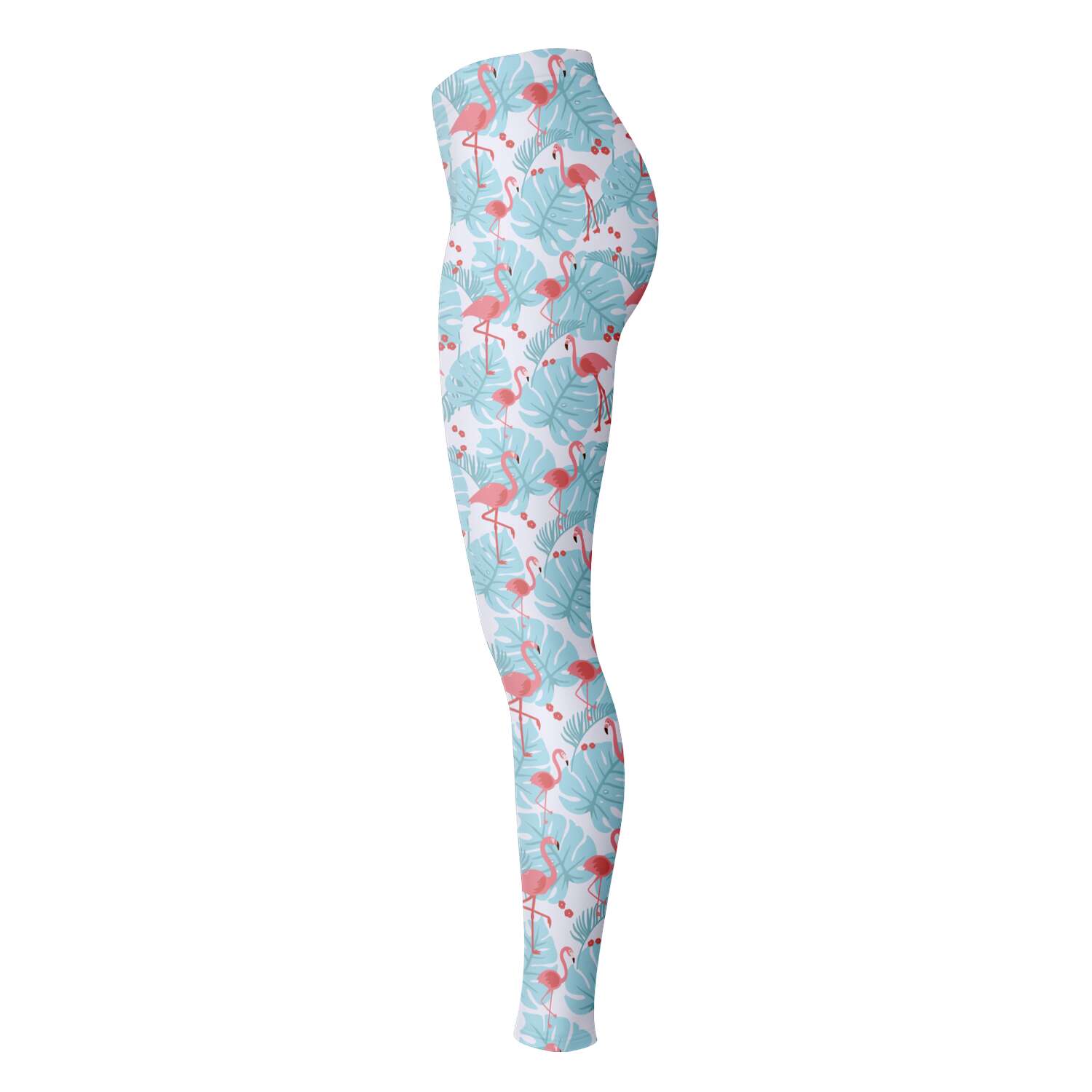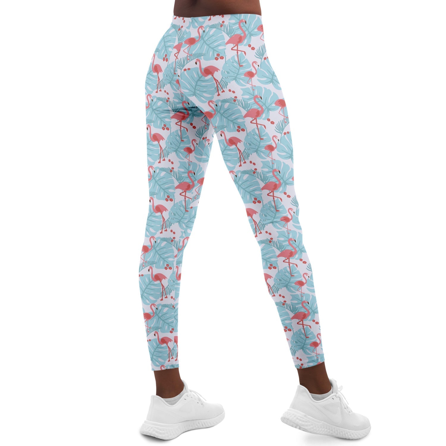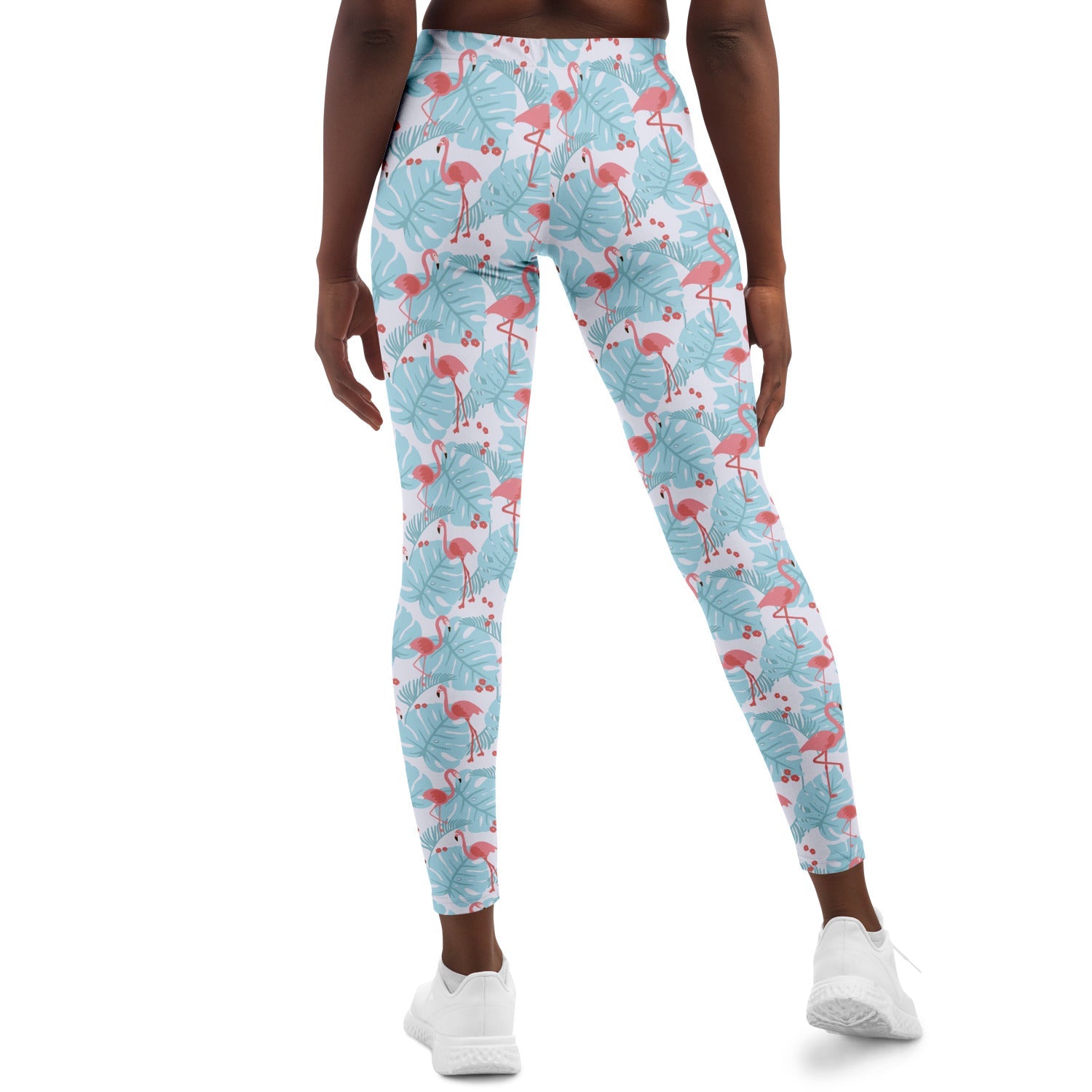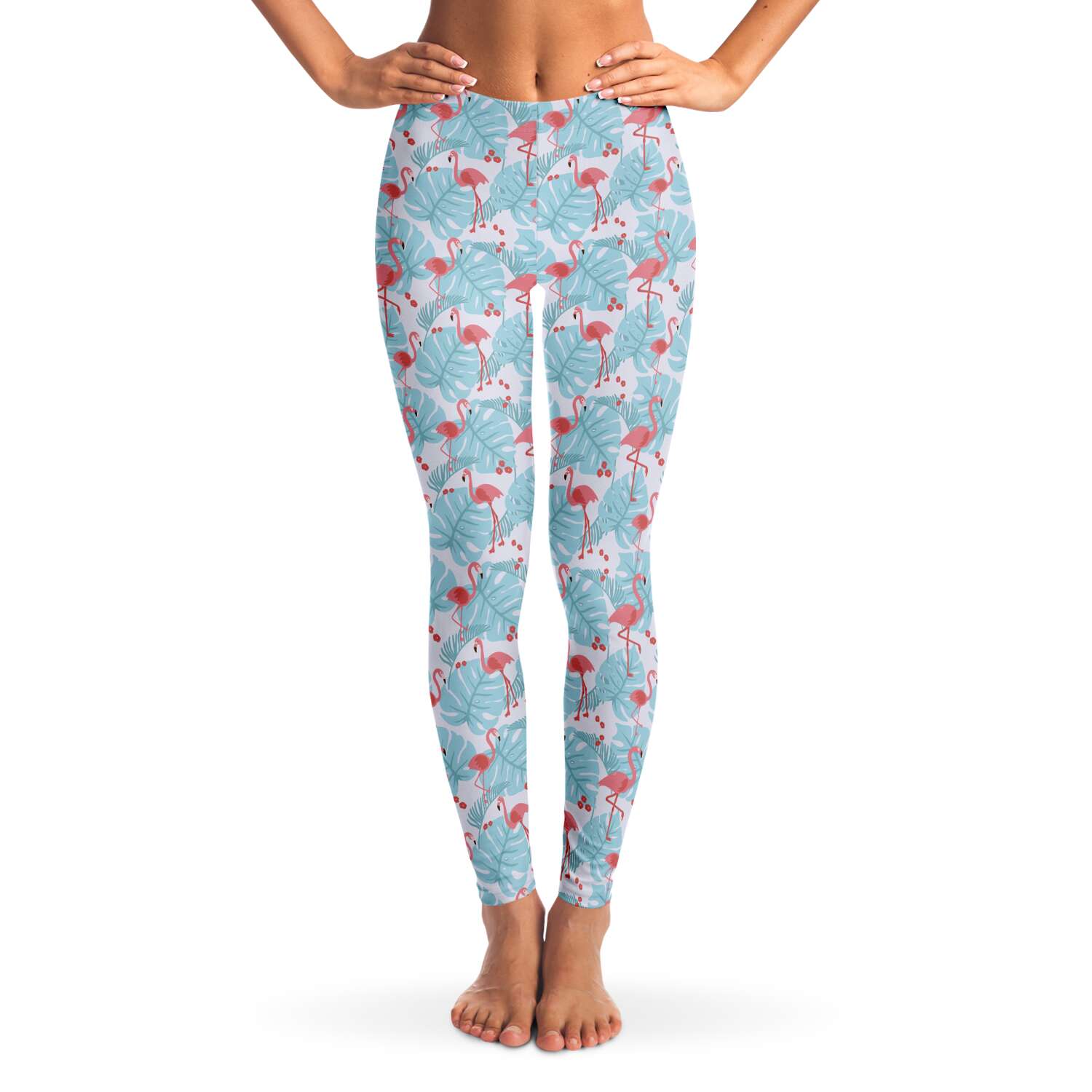 Made from 100% recycled polyester, these flamingo leggings are comfortable, fashionable, and a colorful celebration of the beautiful bird! With a four-way stretch, elastic waistband, and microfiber yarn, this excellent item of flamingo merch is a pleasure to wear for all casual occasions. Whether you're running errands, going for a run, hanging out with friends, or anything in between, you'll be cozy and snug with your flamingo friends right along for the ride!