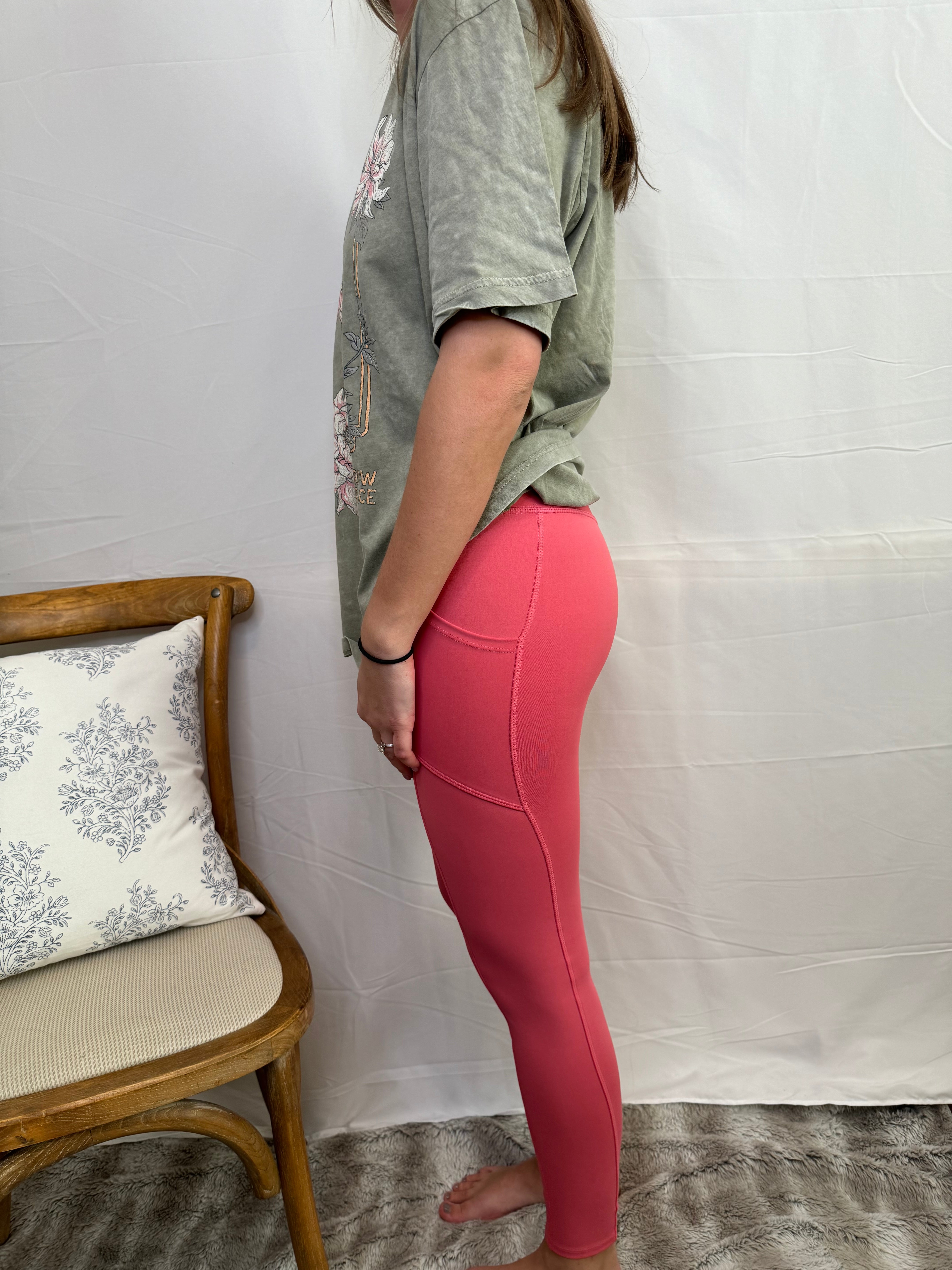 The Marathon Legging will have you wanting to run a marathon in these comfortable athletic leggings. They are a full length legging that have a wide waistband and pockets!!