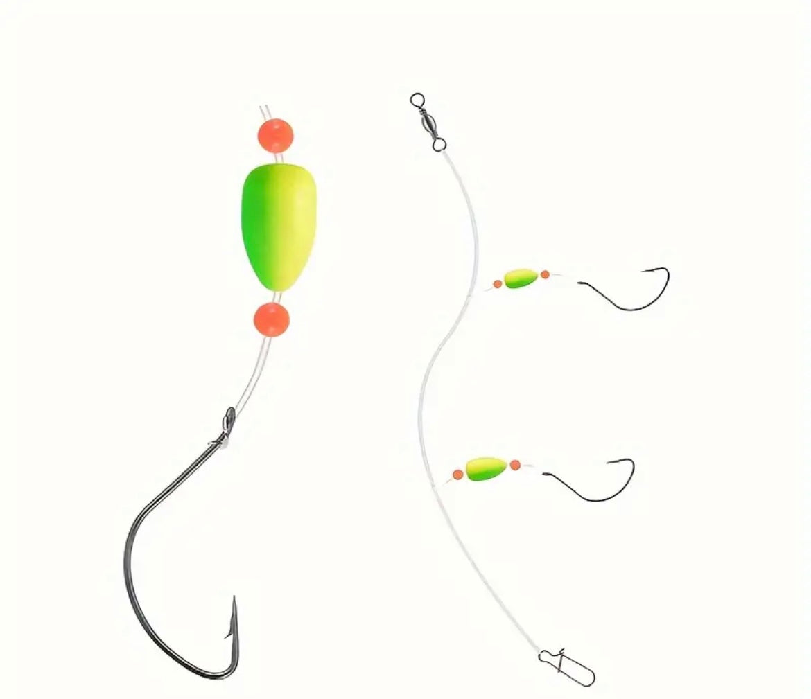 Enhance your fishing experience with our 2 For 1 Rig! The colors and patterns on the floats are made to imitate a sand flea. This is a bait most saltwater fish can't resist!