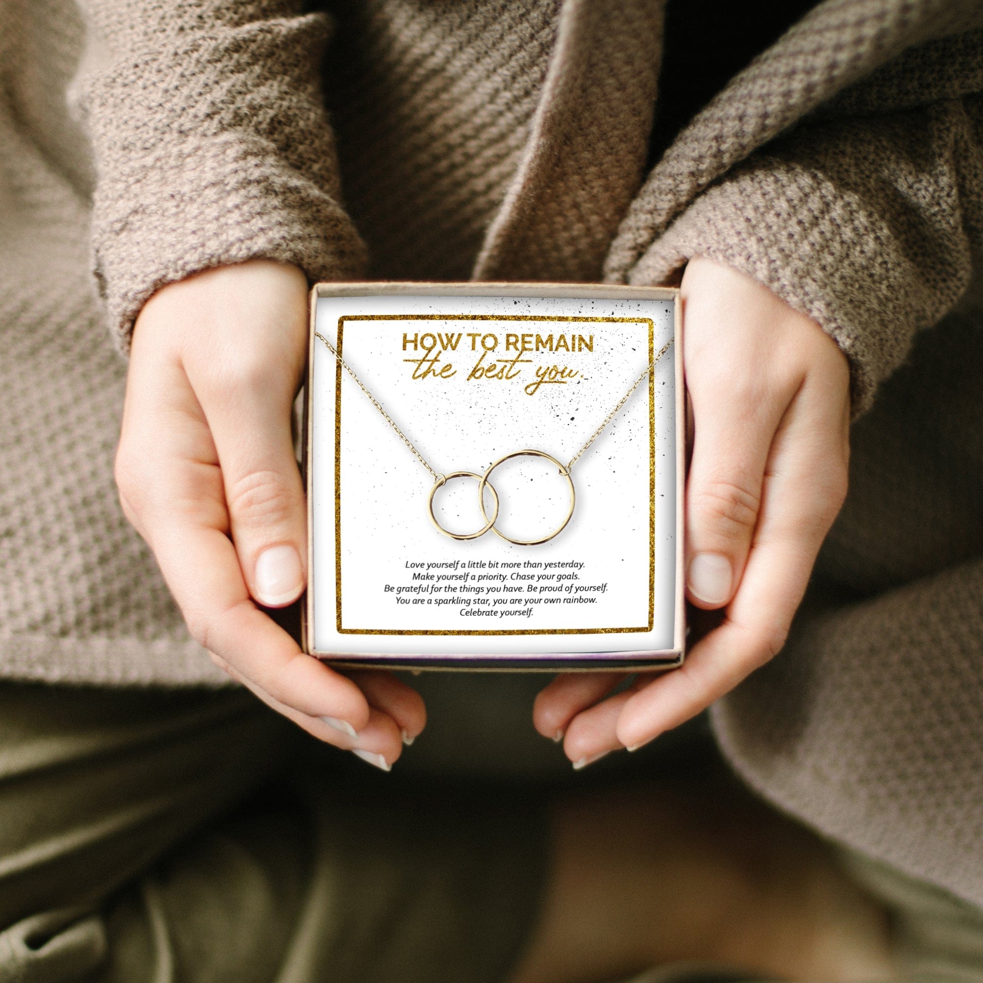 Gift a timeless treasure that transcends occasions, reflecting both personal growth and the enduring strength of your connection. Our elegant interlocking circles necklace isn't merely an accessory; it's a potent emblem of continuity, personal development, and the unspoken bonds that link us.