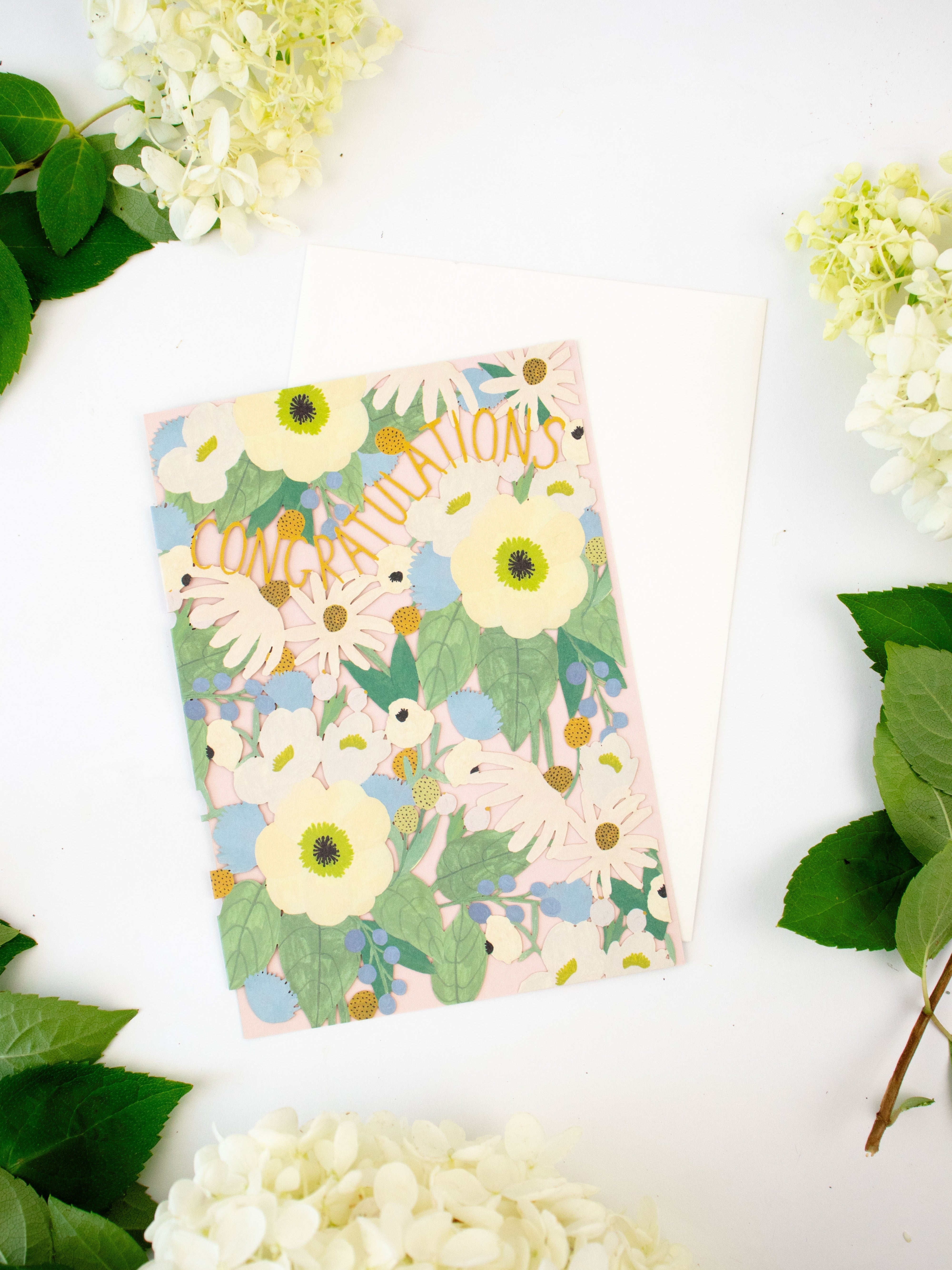 This is a big pink floral congratulations card. It will be the prettiest one she gets.
