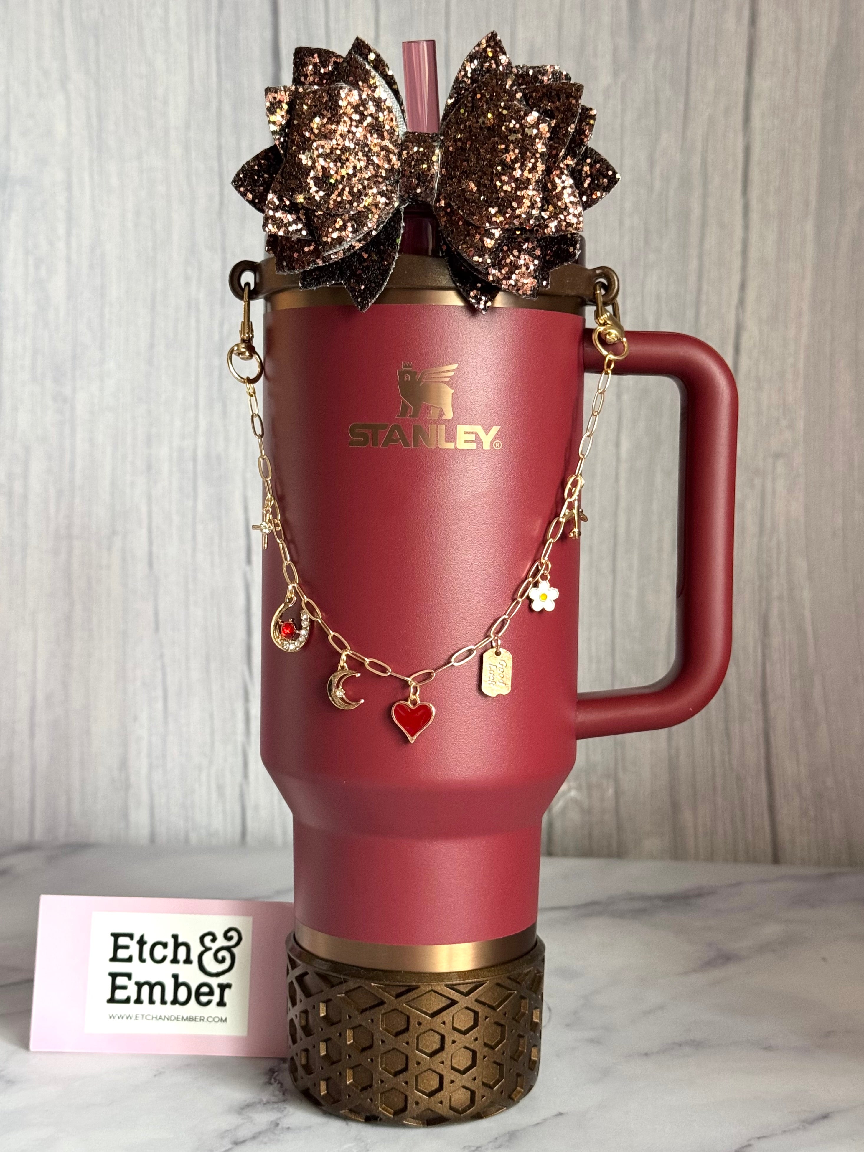 Add a splash of personality to your tumbler with our Tumbler Charm Necklace Collar! Made from high-quality, stretchy silicone, this collar is designed to fit tumblers ranging from 14oz to 40oz. Whether you're sprucing up your Stanley or another favorite tumbler, this flexible accessory is ready to shine.