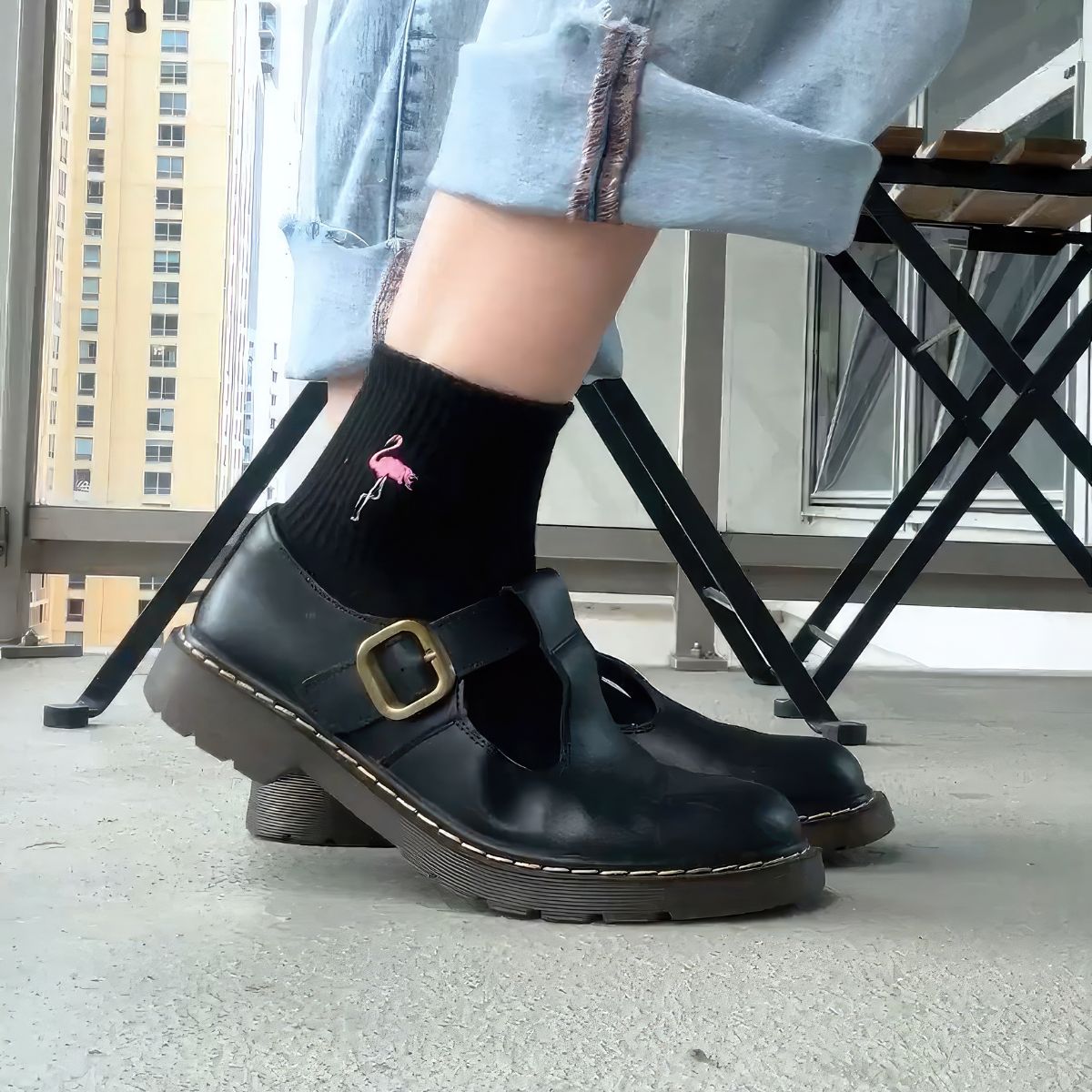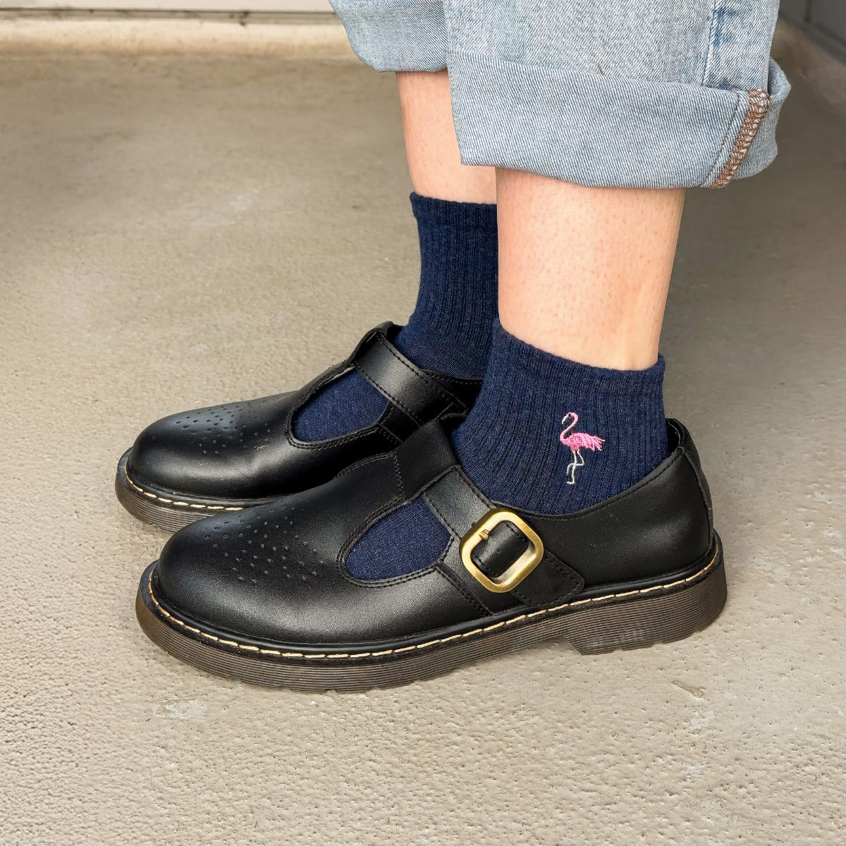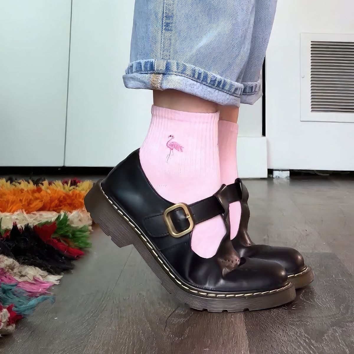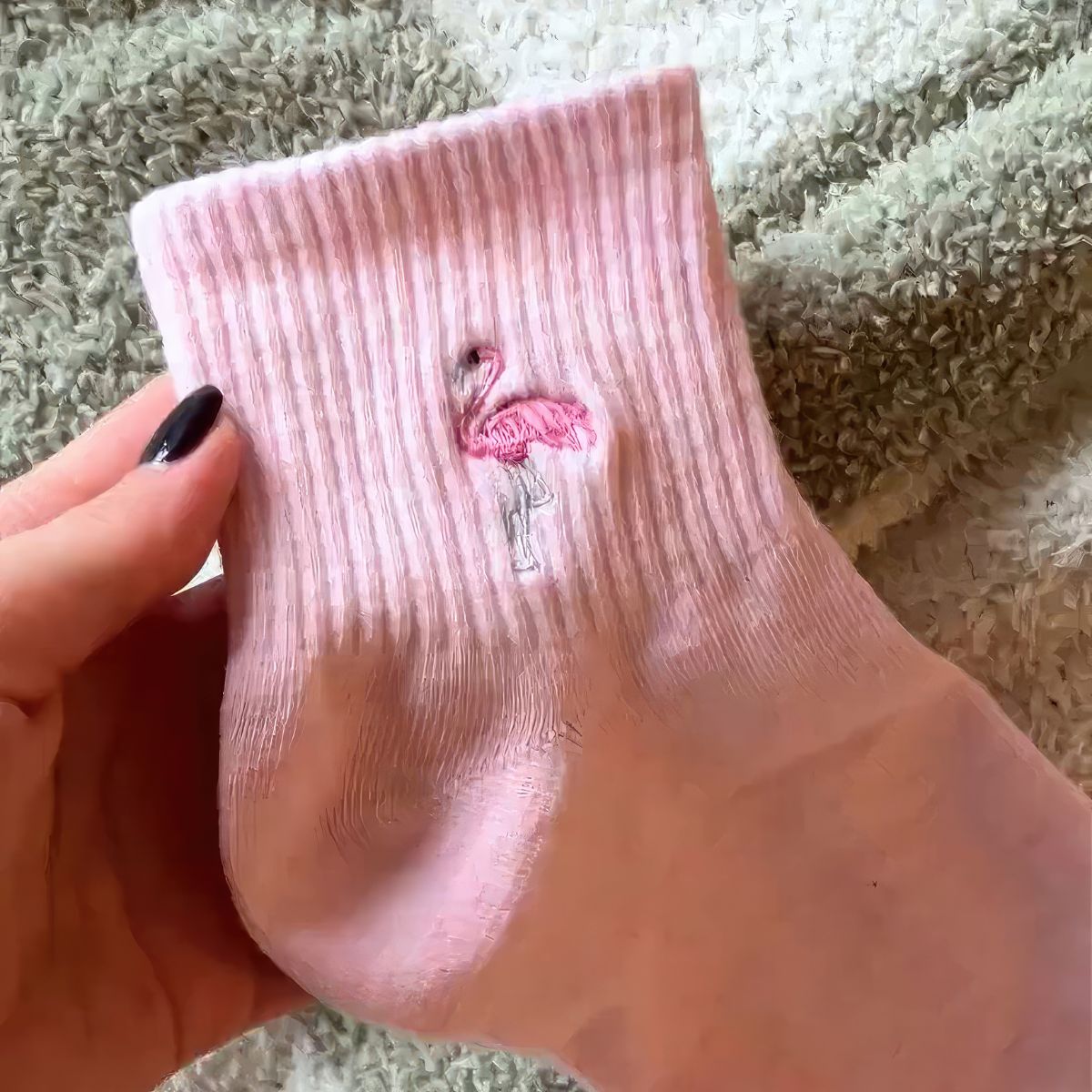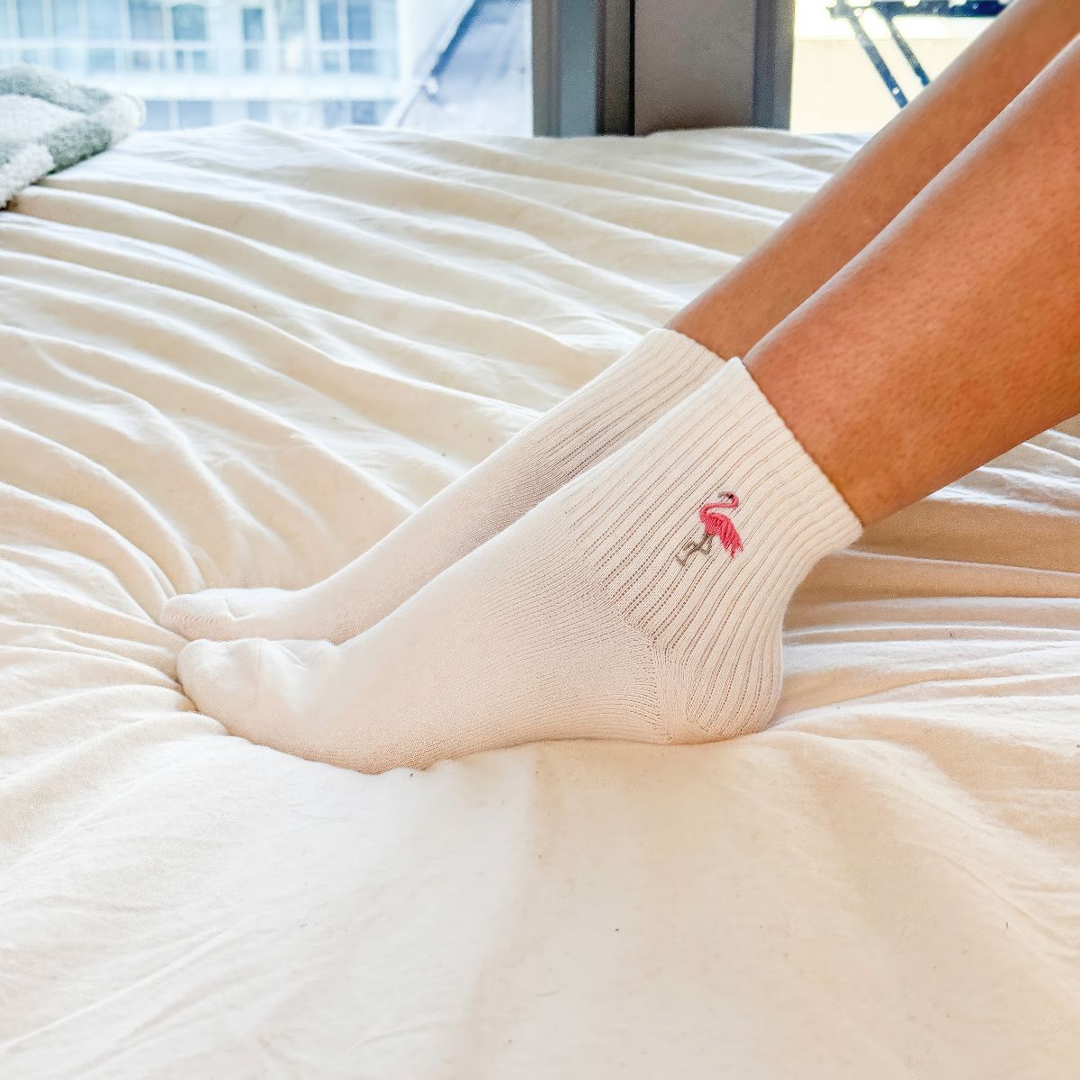 It’s time to get classy with these flamingo socks! Made of durable cotton, these socks are guaranteed to keep your feet comfortable. Featuring cute embroidered silhouettes of our favorite fowl, and available in five colors, you'll get to choose the right pair for you.