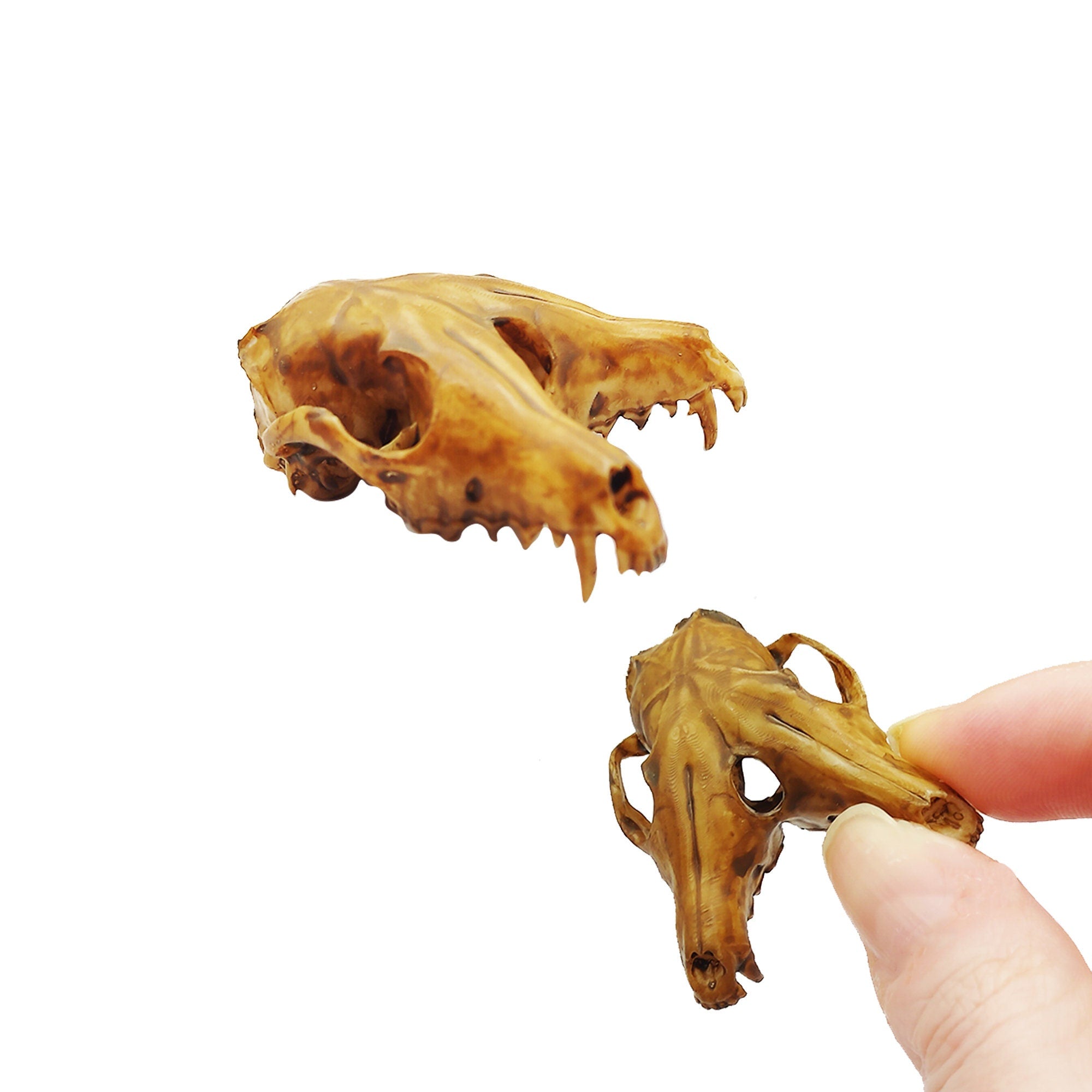 These miniature red fox skull replicas are meant to be realistic even in their small size. They would look great in your dollhouse or diorama or use them for your own art projects. This larger size is in scale for 12 inch dolls.