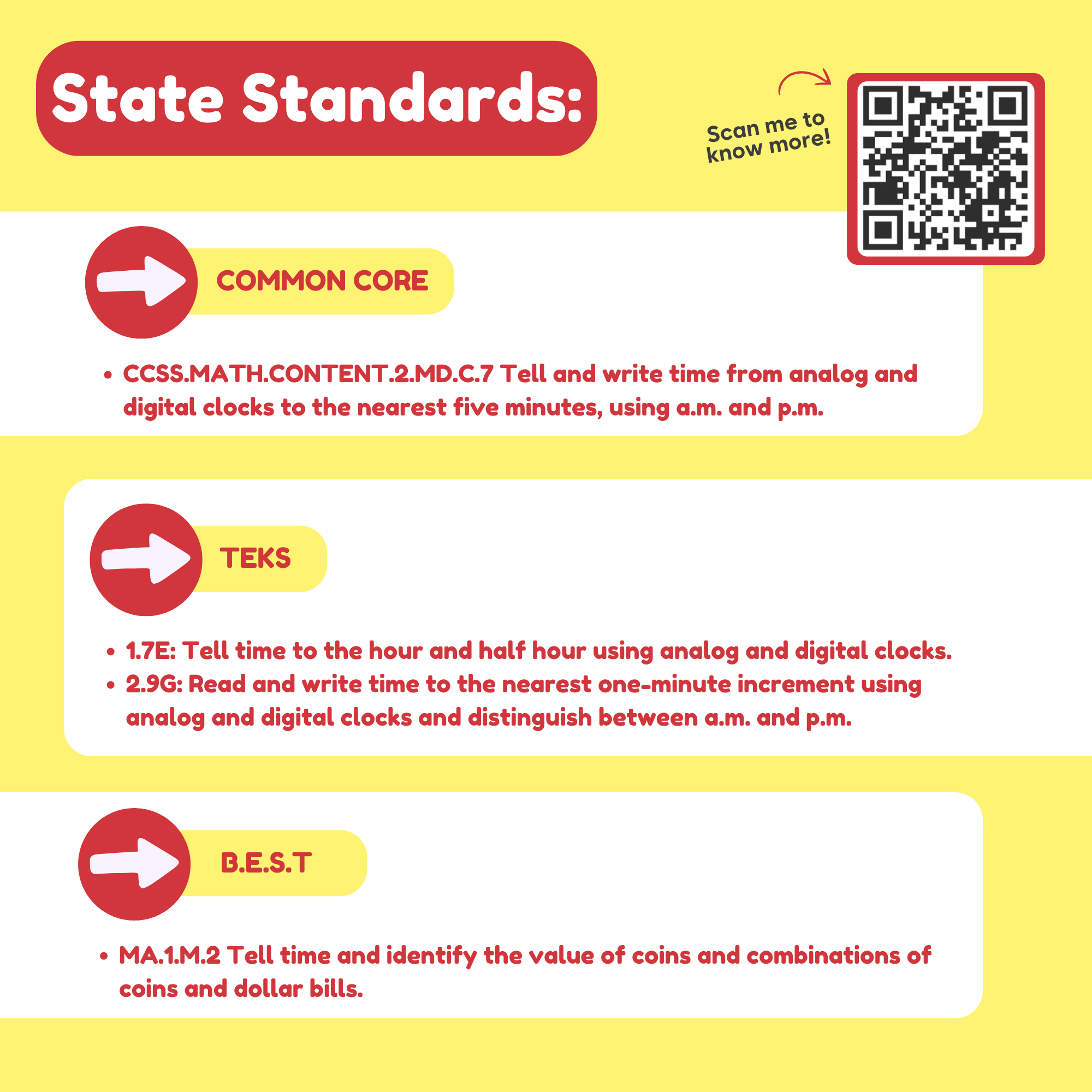 - Read analog clocks accurately, including hours, half-hours, and quarter-hours.