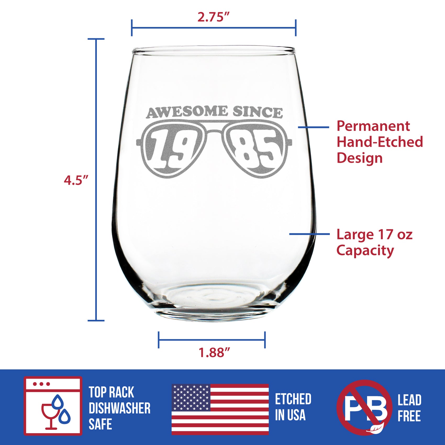 Awesome Since 1985 Engraved Stemless Wine Glass Gifts 40th Birthday Gift Ideas Large Wine Glasses - 17 oz