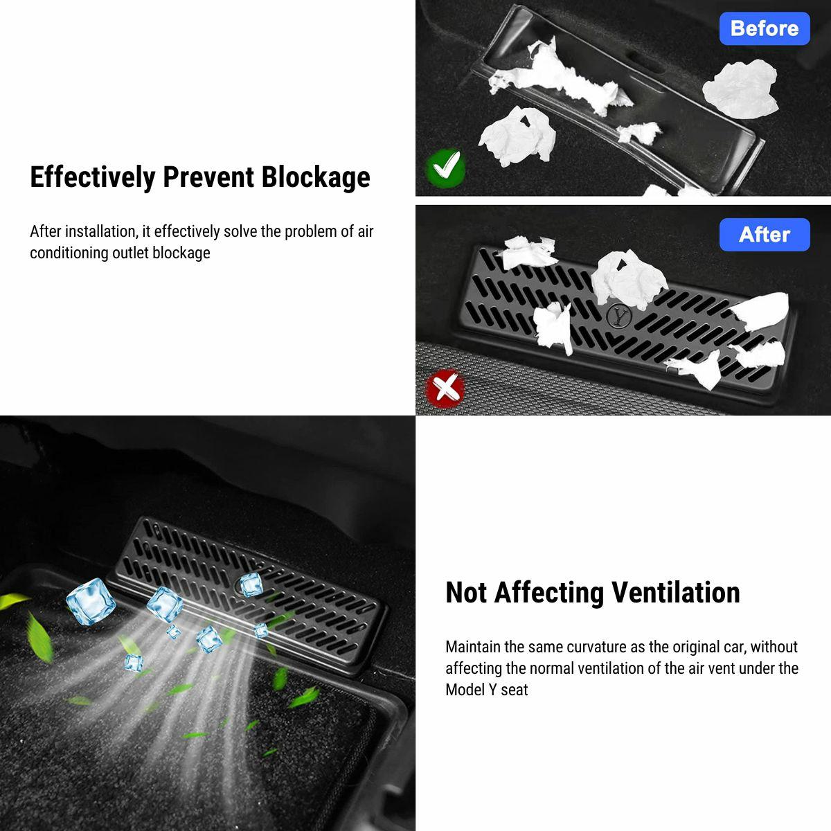 A2 - Yes. In daily life, dust, paper scraps, snack bags, etc. are easily dropped under the seat. The original air outlet lacks protection, and if the air outlet is blocked by foreign objects, it is easy to cause damage to the fan motor, making maintenance very troublesome. Installing the Tesla Model Y vent cover can effectively avoid the above issues.