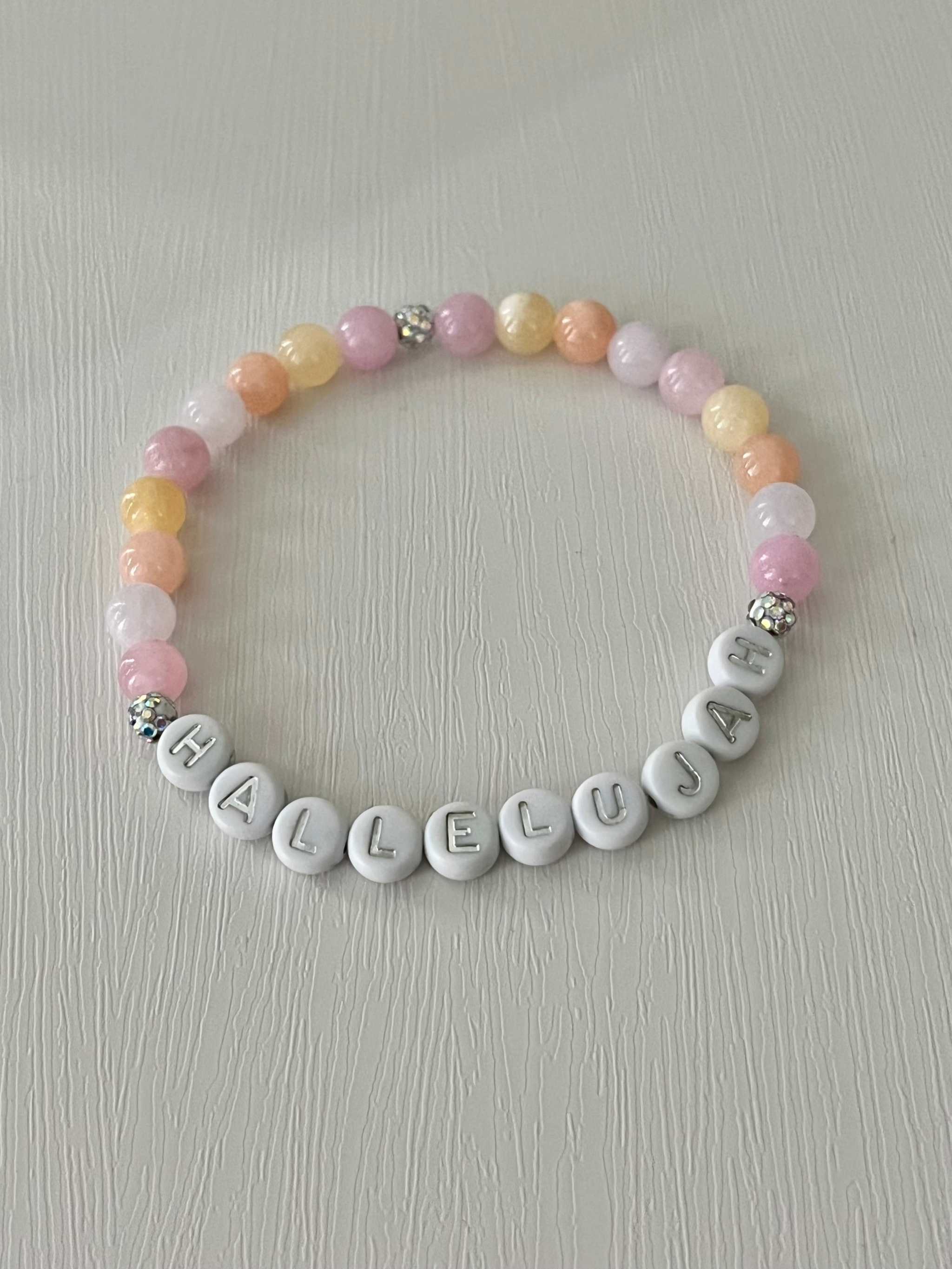 The Hallelujah Multicolored Jade Bead Bracelet is inspired by the word "Hallelujah," which means "Praise the Lord" in the Bible. This bracelet is made with colorful jade beads and is a special way to show your faith. It’s great for gifting or adding meaning to your everyday outfits.