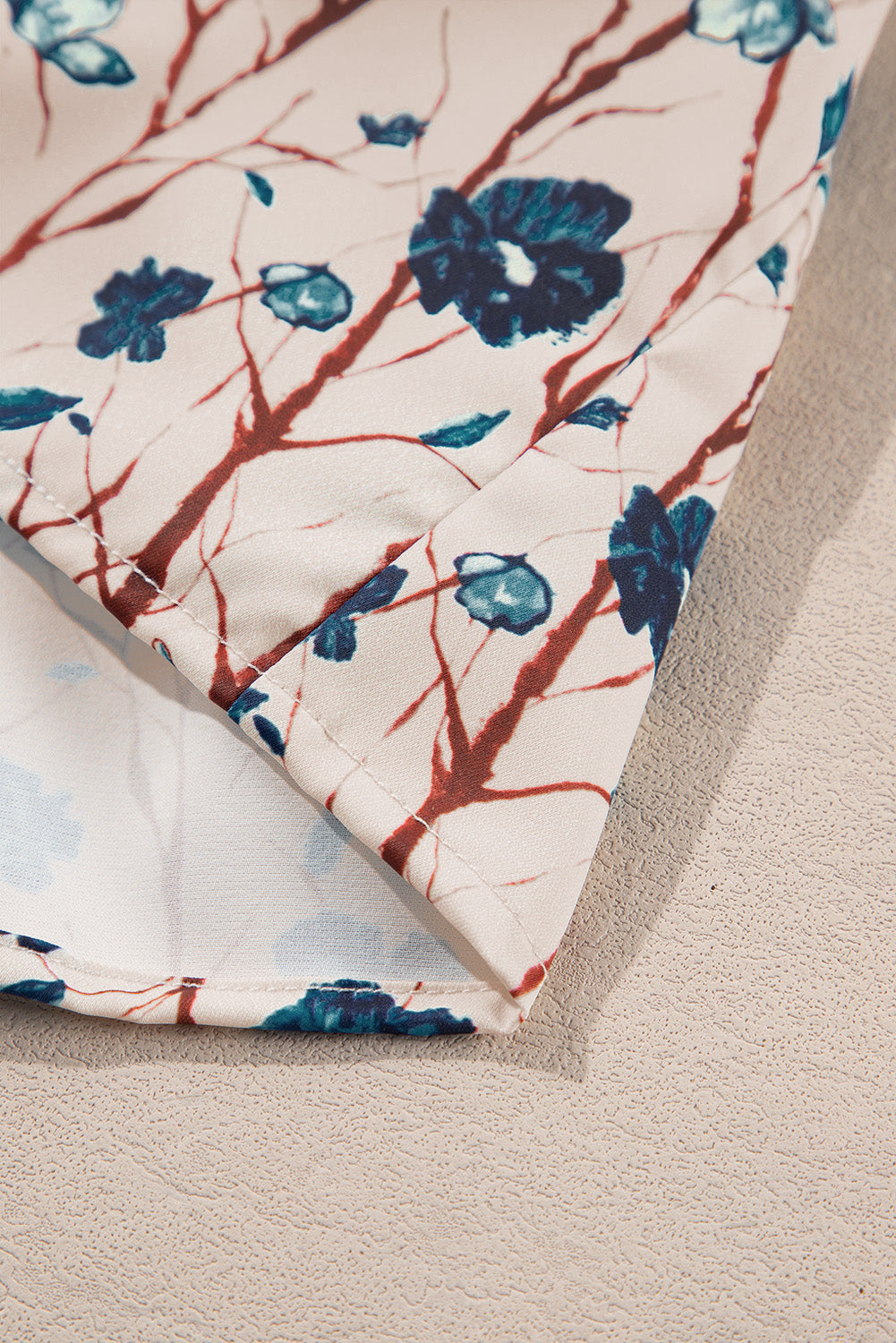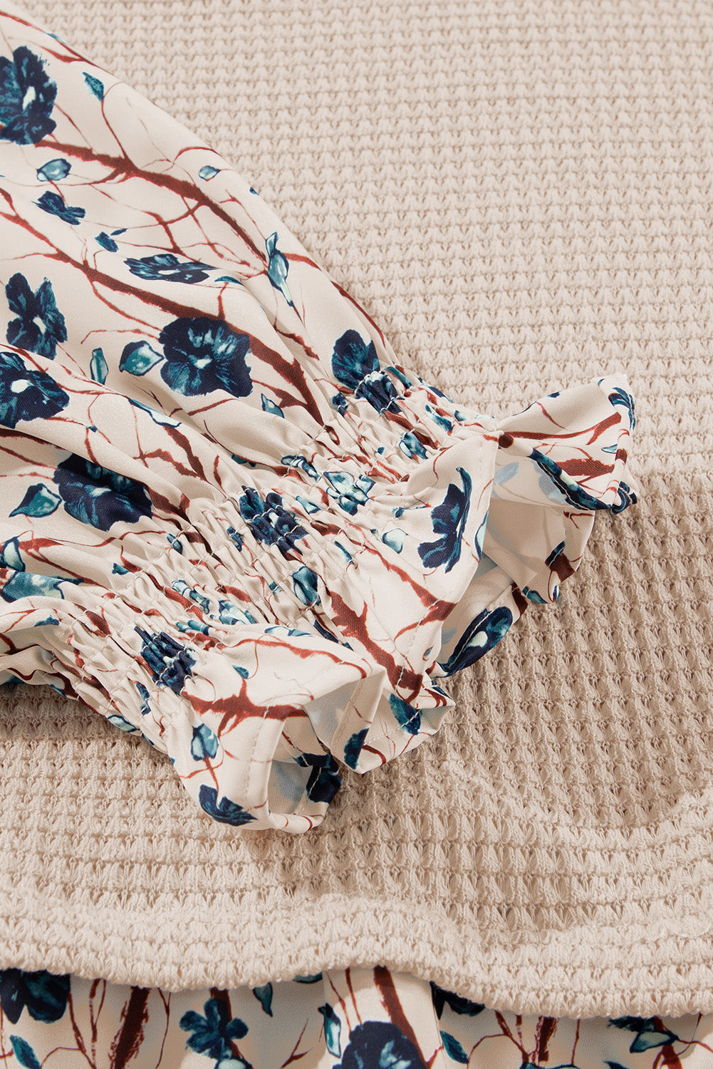 Beige Faux Two Piece Knit Patchwork Floral Plus Size Top