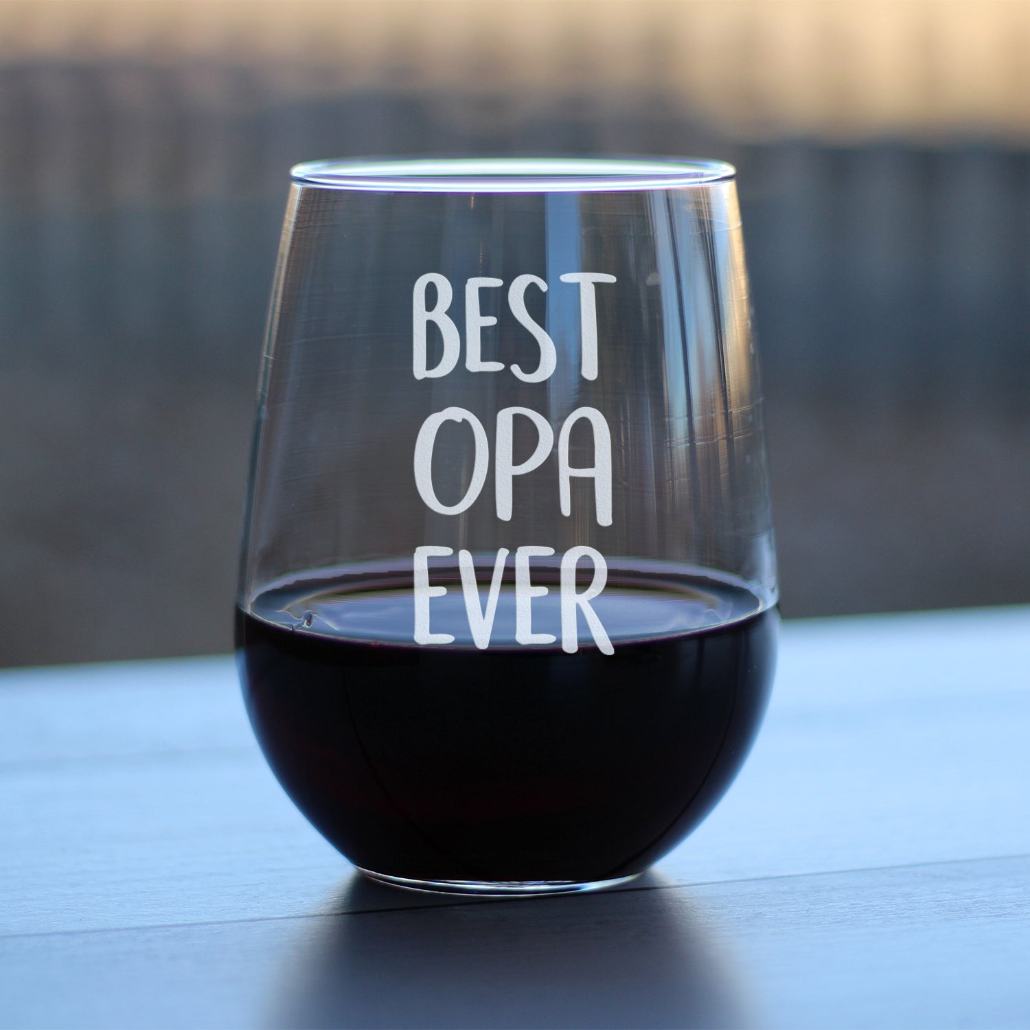 Best Opa Ever - Cute Funny Stemless Wine Glass, Large 17 Ounce Size, Etched Sayings, Father's Day or Birthday Gift for Grandpa