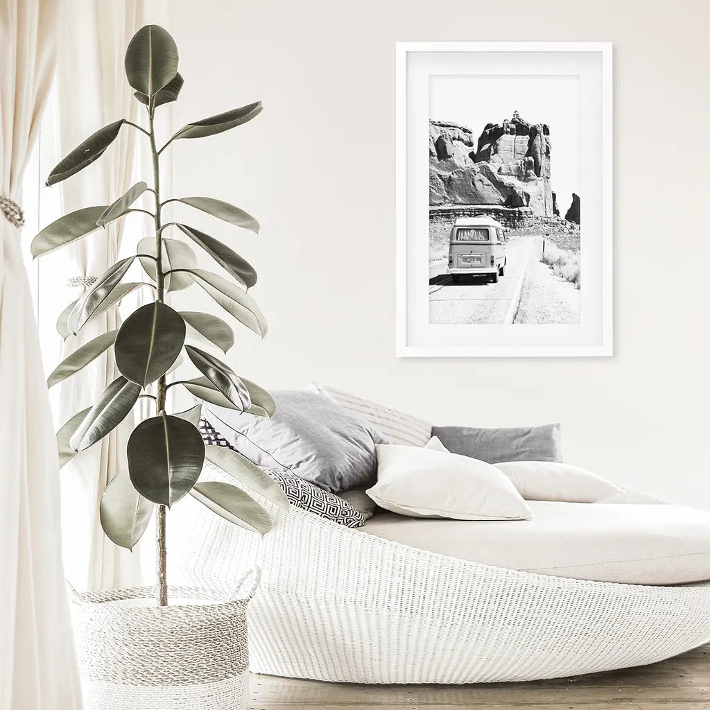 Black White Van Camper Poster. Utah National Park Wall Art ‐ White Frame / 20x30 inches