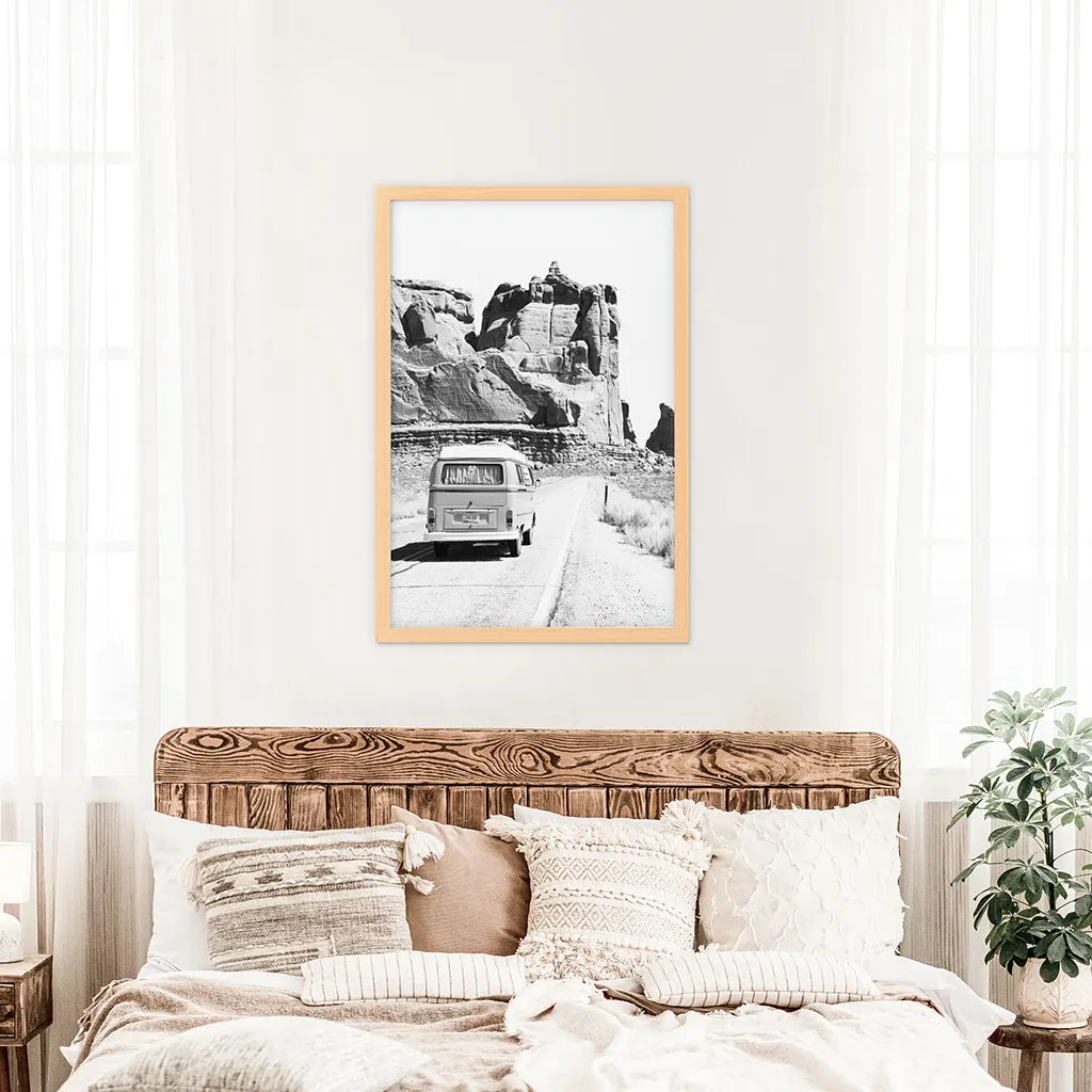 Black White Van Camper Poster. Utah National Park Wall Art ‐ Wood Frame / 20x30 inches