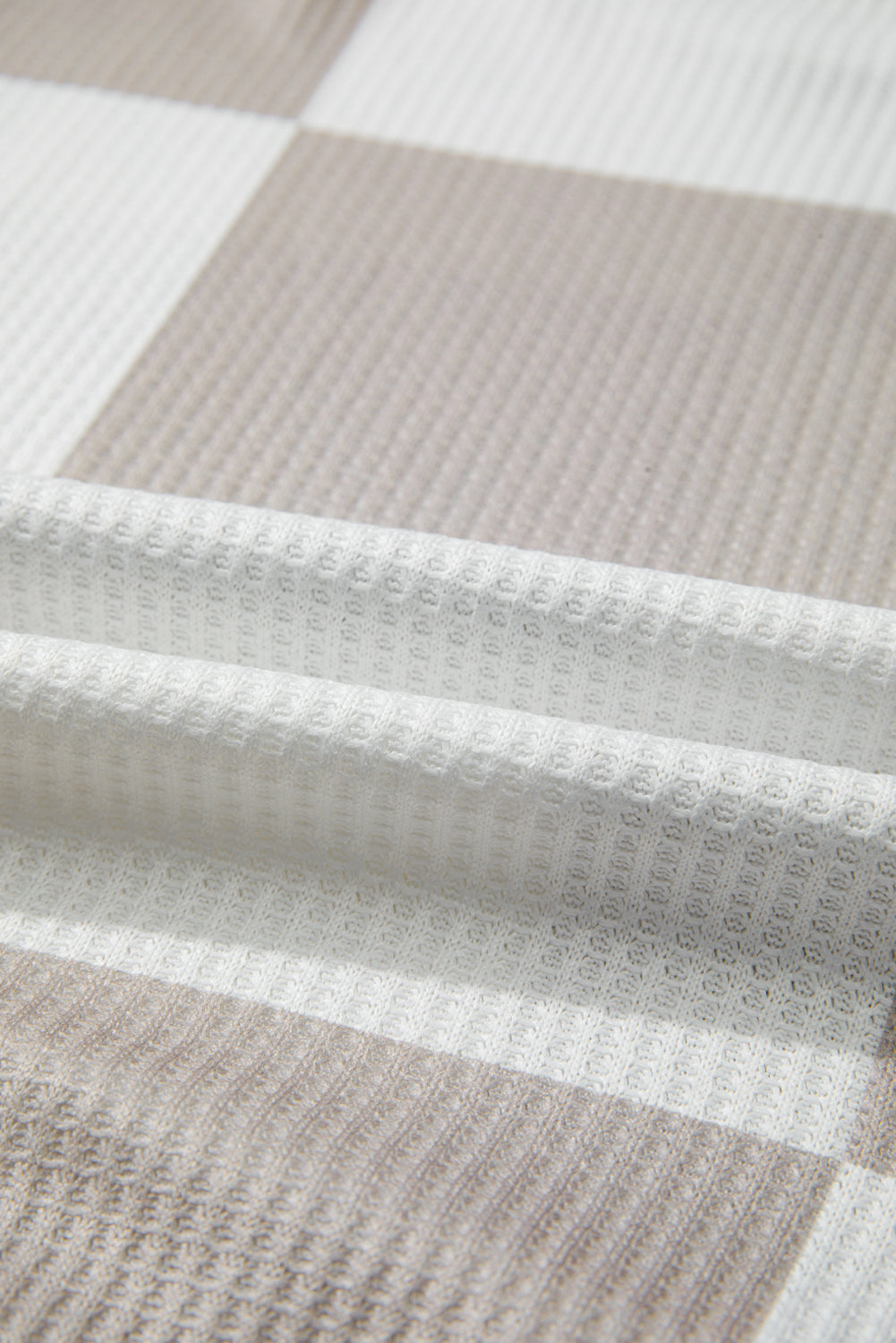 Checker Waffle Knit Long Sleeve Top ‐ Khaki / XL