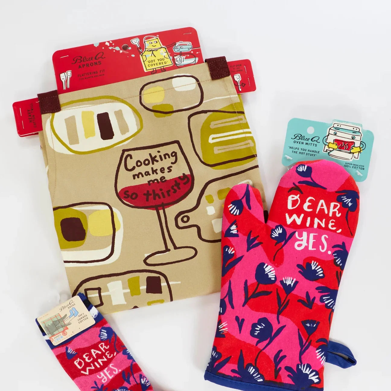 - GIVE BACK: One percent of the sale of Blue Q aprons is donated to hunger relief programs throughout the world.