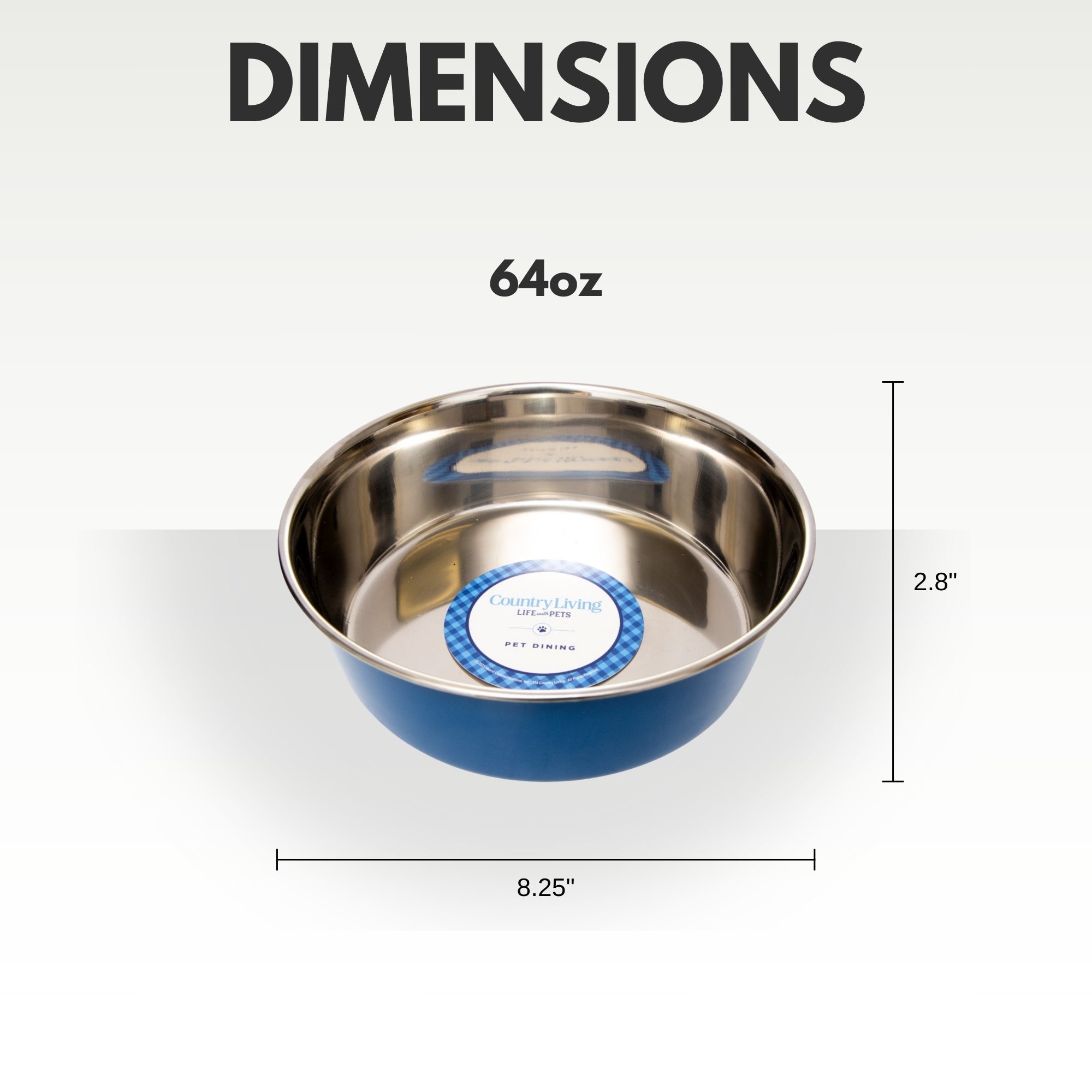 Country Living Set of 2 Heavy Gauge Stainless Steel Dog Bowls - Perfect for Food & Water ‐ Blue / 64 oz