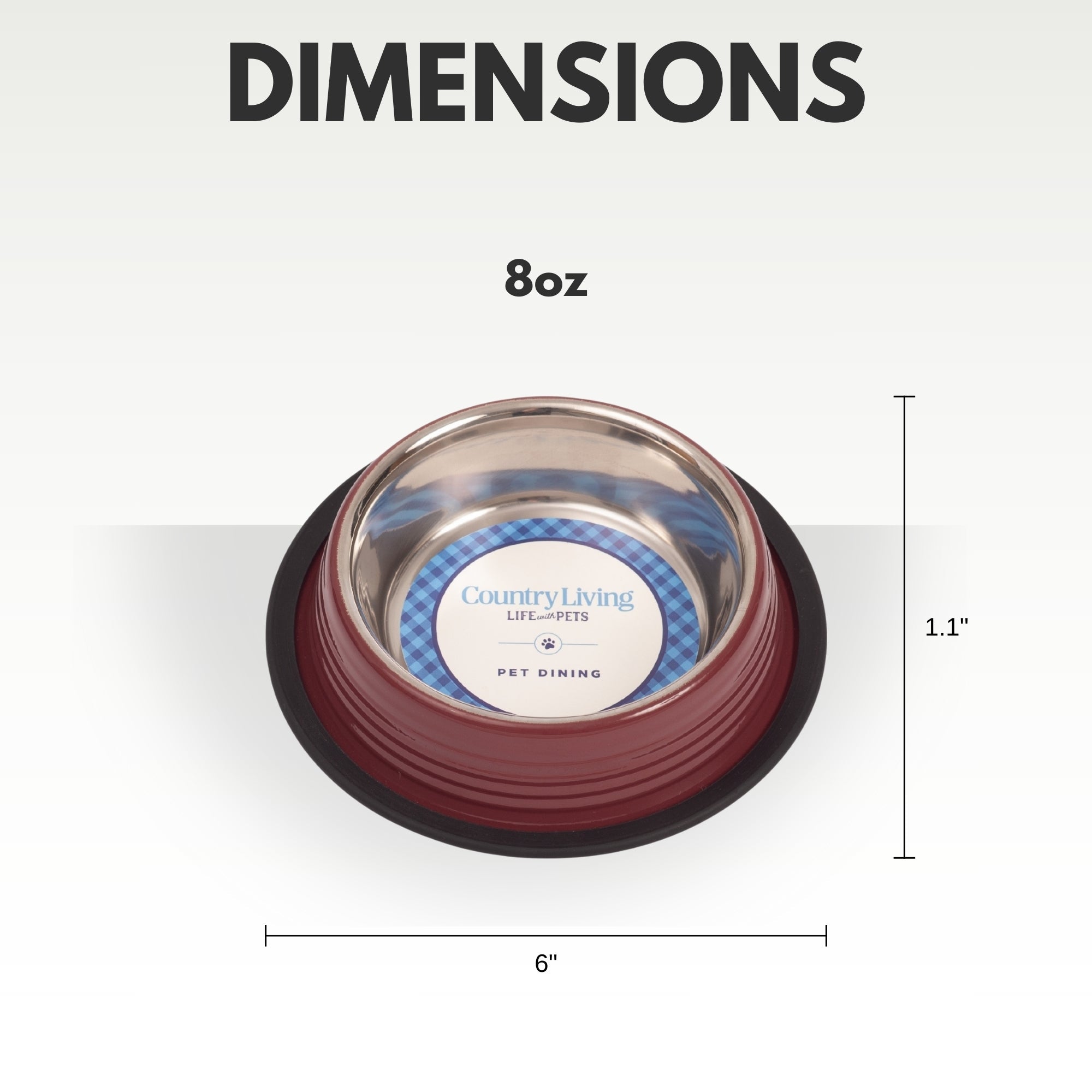 Country Living Set of 2 Ribbed Non-Slip Pet Bowls – Merlot Red ‐ 8 oz