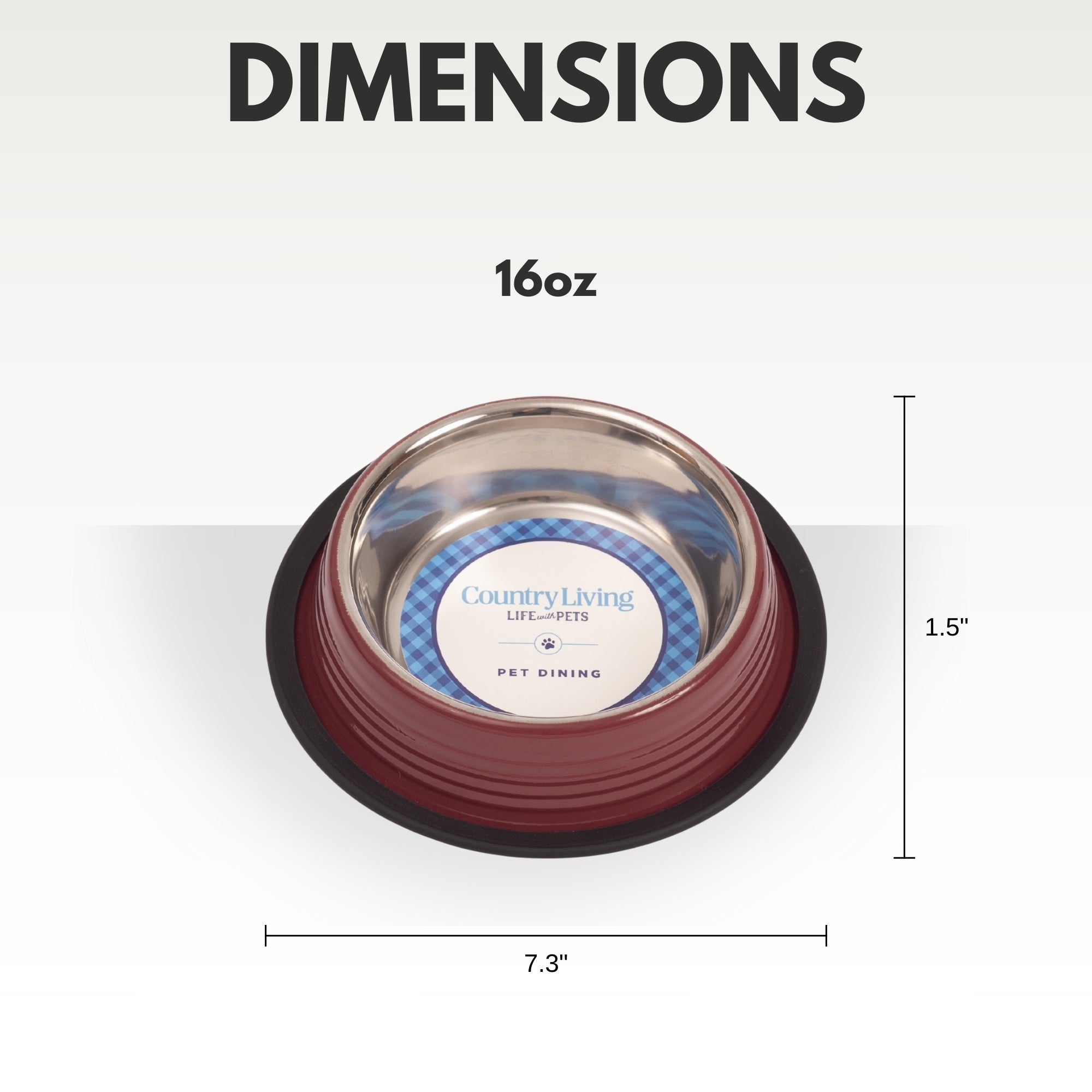 Country Living Set of 2 Ribbed Non-Slip Pet Bowls – Merlot Red ‐ 24 oz