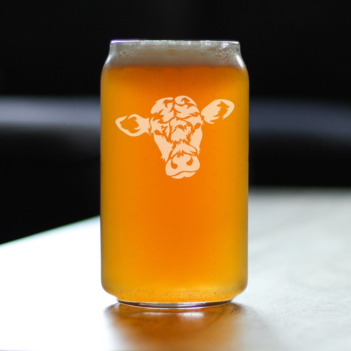 Cow Face Beer Can Pint Glass - Western Themed Farm Decor and Gifts for Cowboys and Girls - 16 Oz Glasses