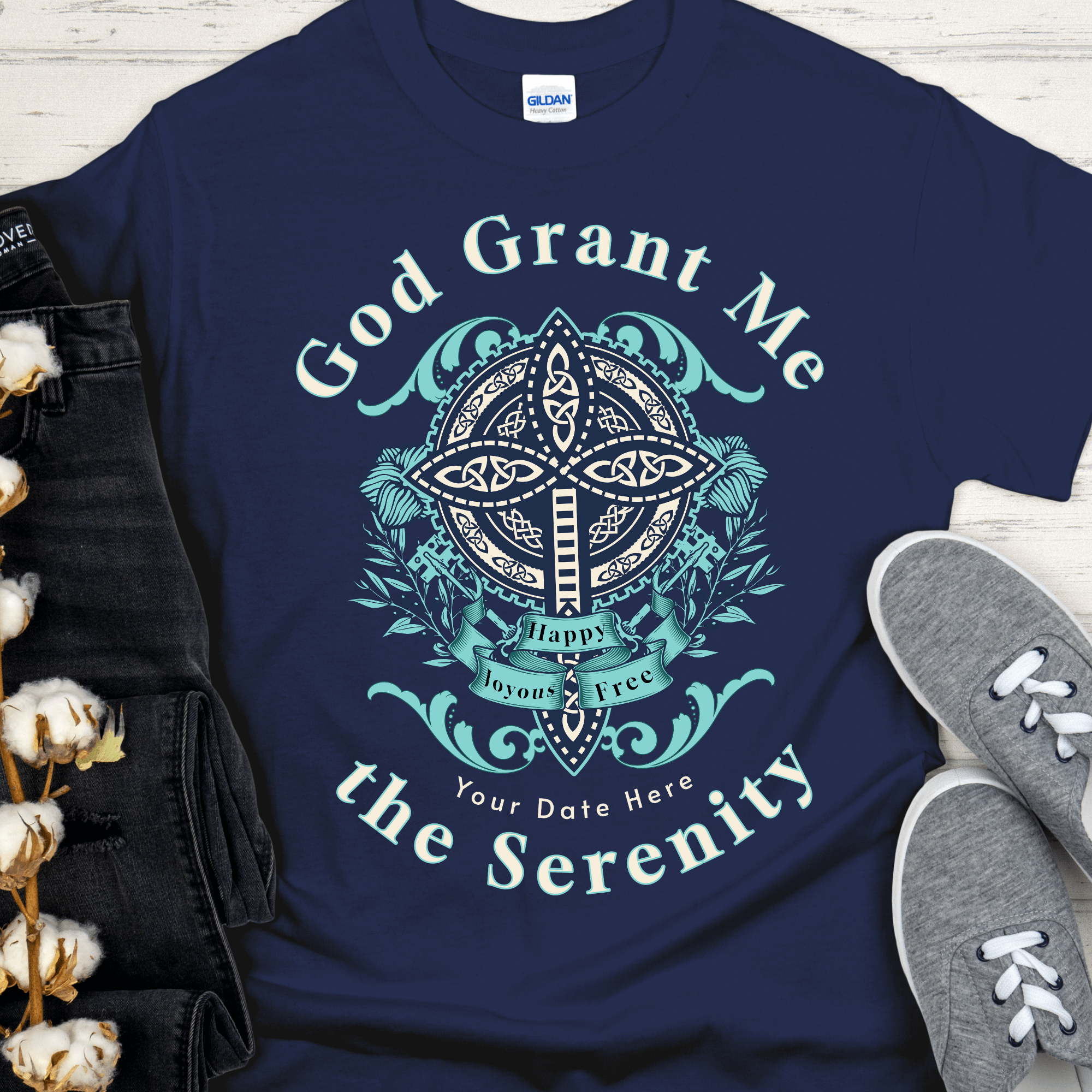 Custom Recovery T-Shirt | Inspiring Sobriety | God Grant Me The Serenity ‐ Navy / L