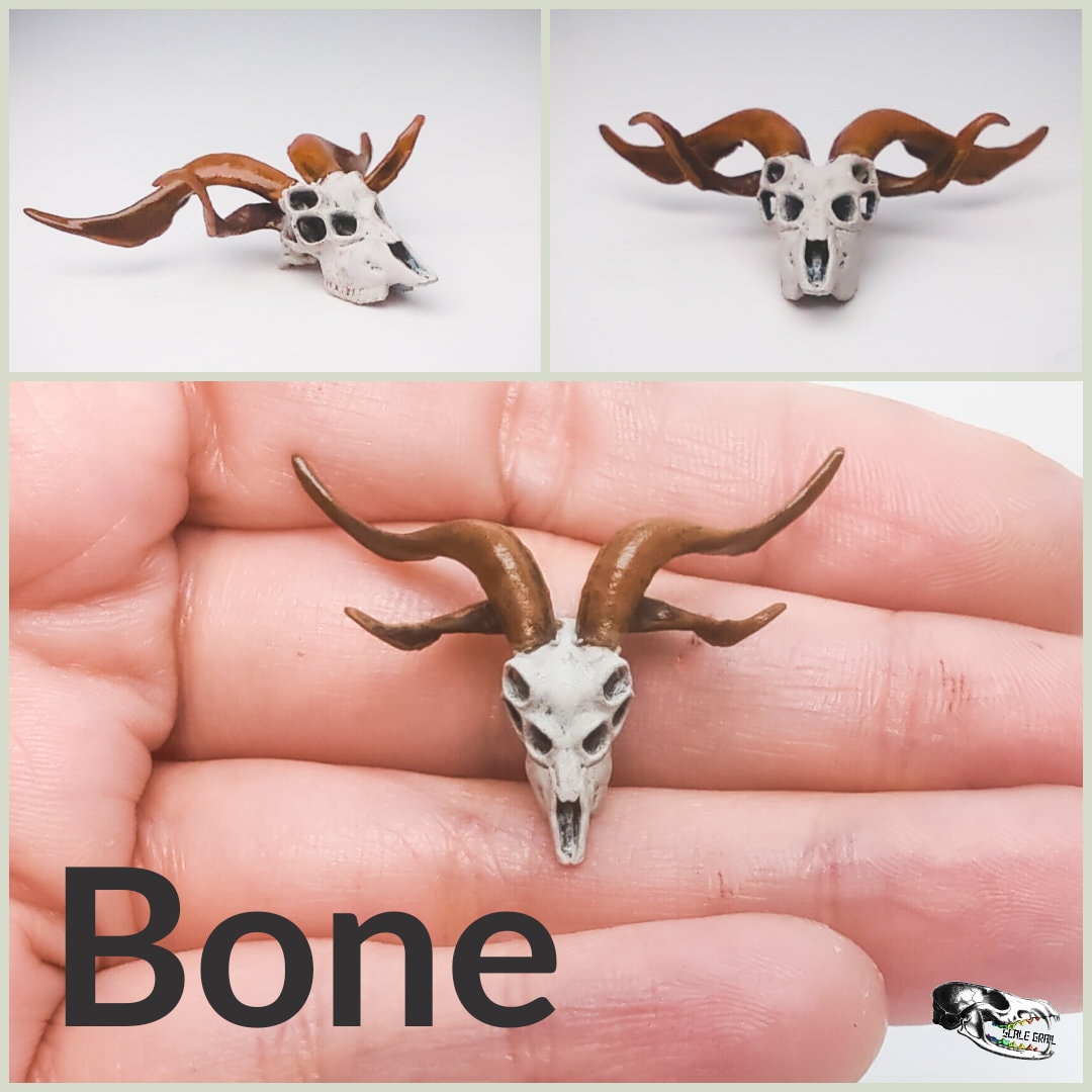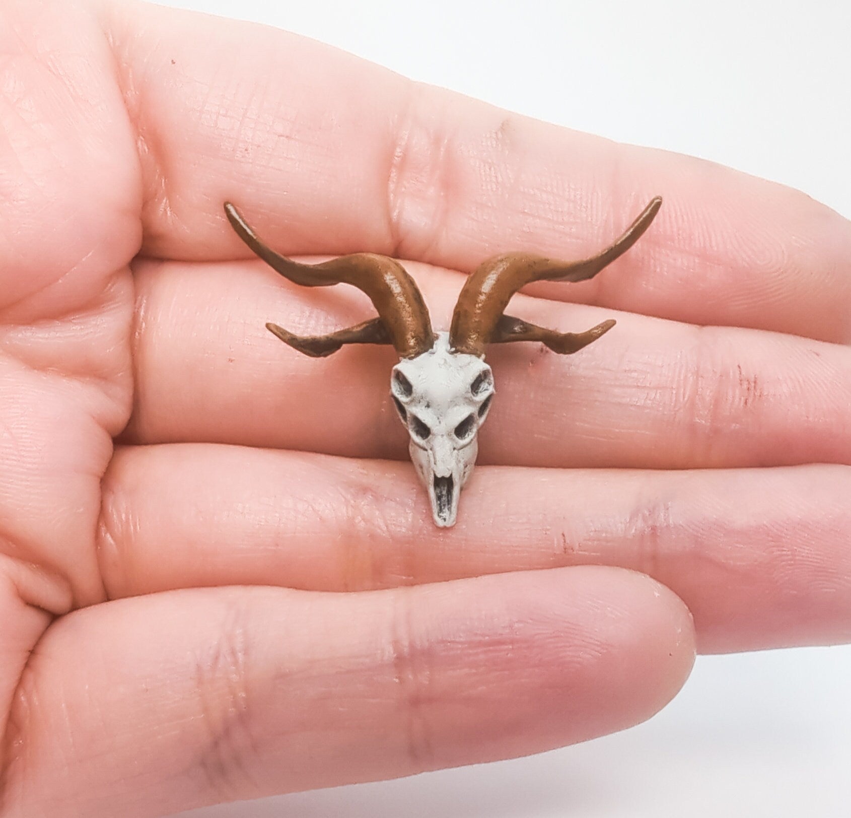 Demon Goat Skull (Field Bones #34: Fantasy) 1:24 scale miniature cranium size for occult diorama, dollhouse, arts and crafts, horror curiosities oddities (1 skull) ‐ Bone (1 painted)