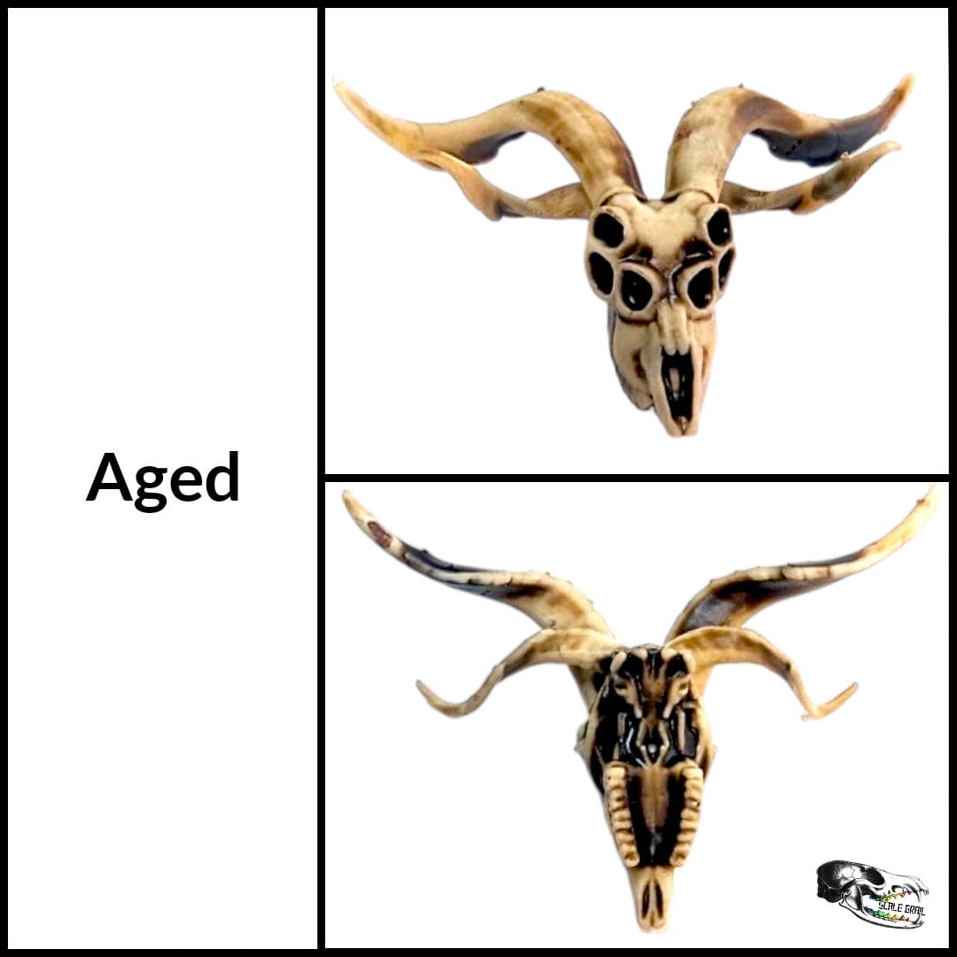 Demon Goat Skull (Field Bones #34: Fantasy) 1:24 scale miniature cranium size for occult diorama, dollhouse, arts and crafts, horror curiosities oddities (1 skull) ‐ Aged (1 skull)