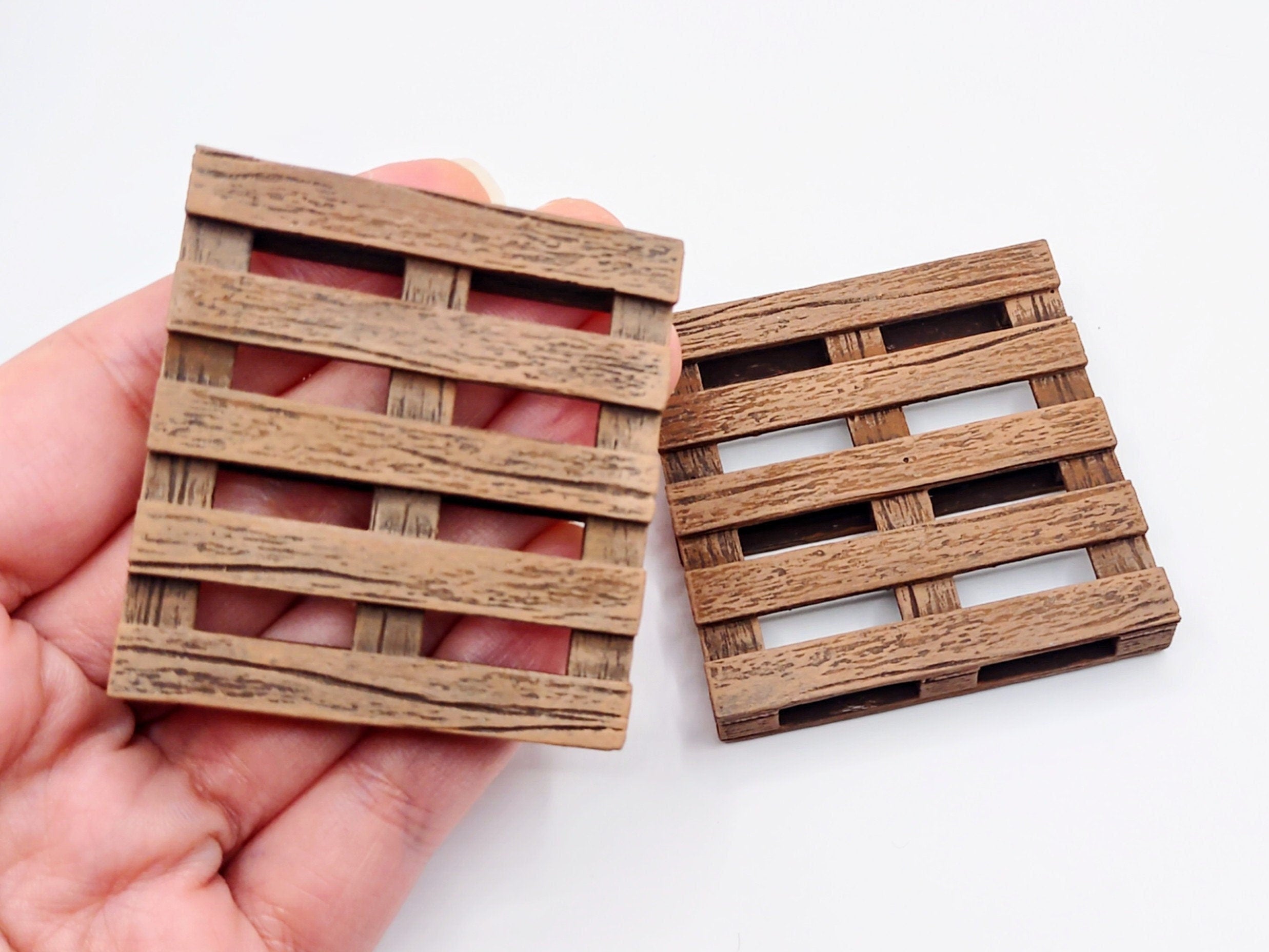 Faux Wood Pallet - 1:24 scale miniature realistic skid for garage warehouse action figure diorama landscape, dollhouse, craft (2 pallets)