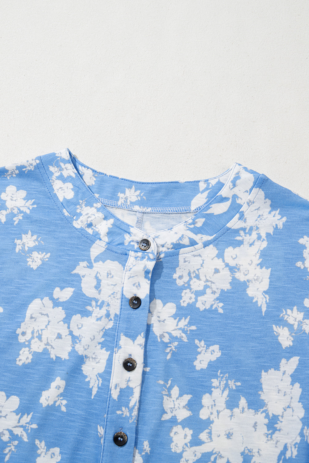 Floral Half-Button Sleeveless Wide Leg Jumpsuit ‐ Myosotis / M