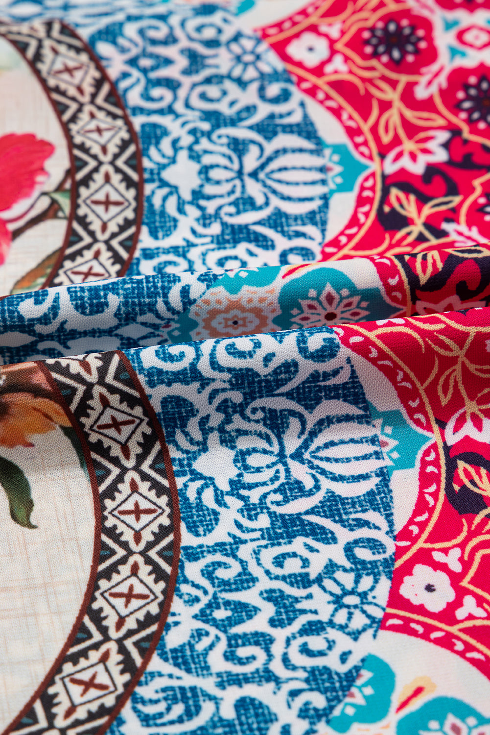 This dress combines classic elegance with modern charm. Featuring a timeless collared design and vibrant mixed patterns, it offers a visually captivating look. The sleeves add a delicate, feminine silhouette, while the button closure provides both style and ease of wear. Perfect for those seeking a refined yet comfortable dress for any occasion. 100% Polyester