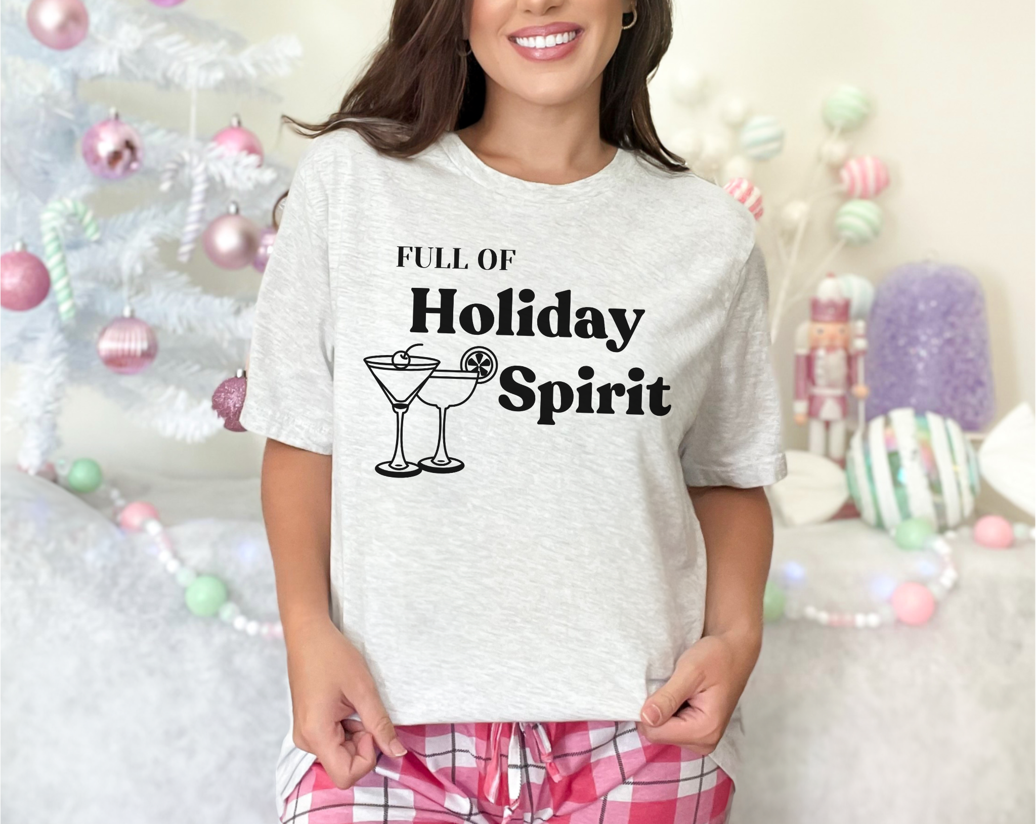 Full of Holiday Spirit Cocktail Christmas Tee ‐ Ash / XS