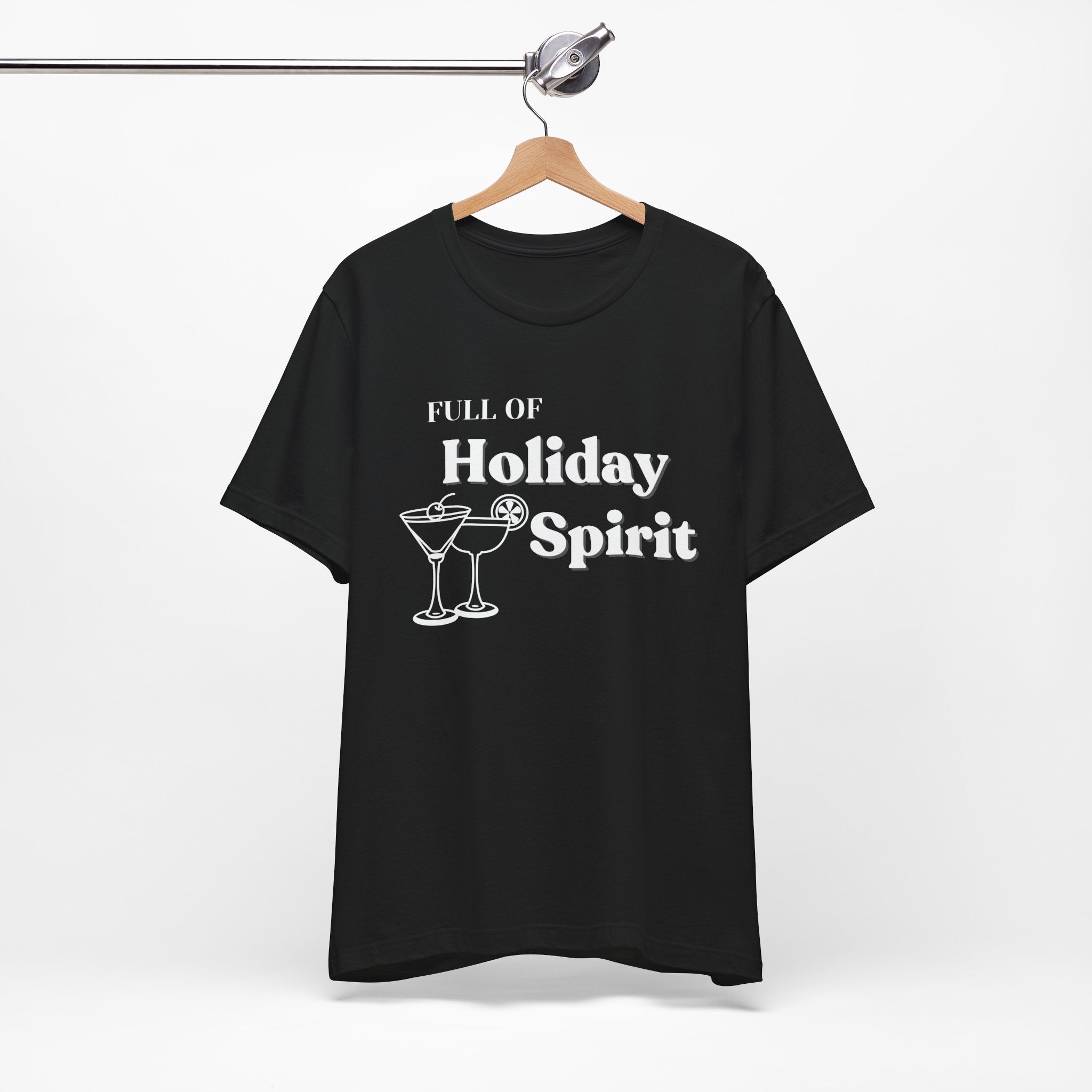 Full of Holiday Spirit Cocktail Christmas Tee ‐ Black / XS