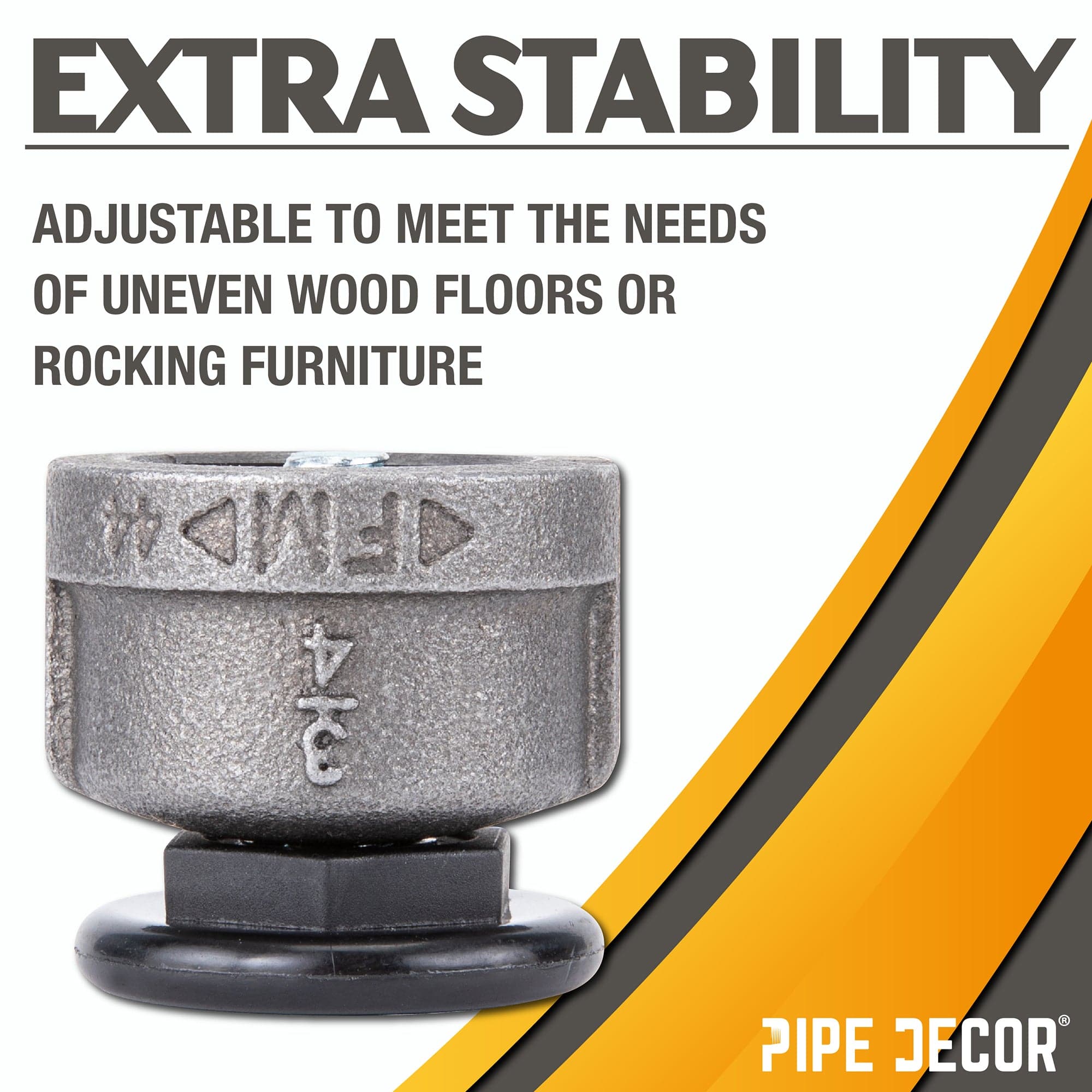 Take your pipe decor to the next level! Customize your pipe furniture with these levelers to add more height or compensate for uneven flooring.