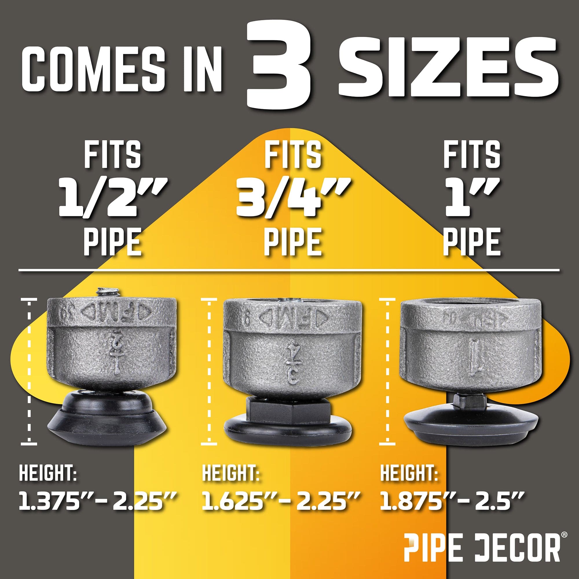 Take your pipe decor to the next level! Customize your pipe furniture with these levelers to add more height or compensate for uneven flooring.