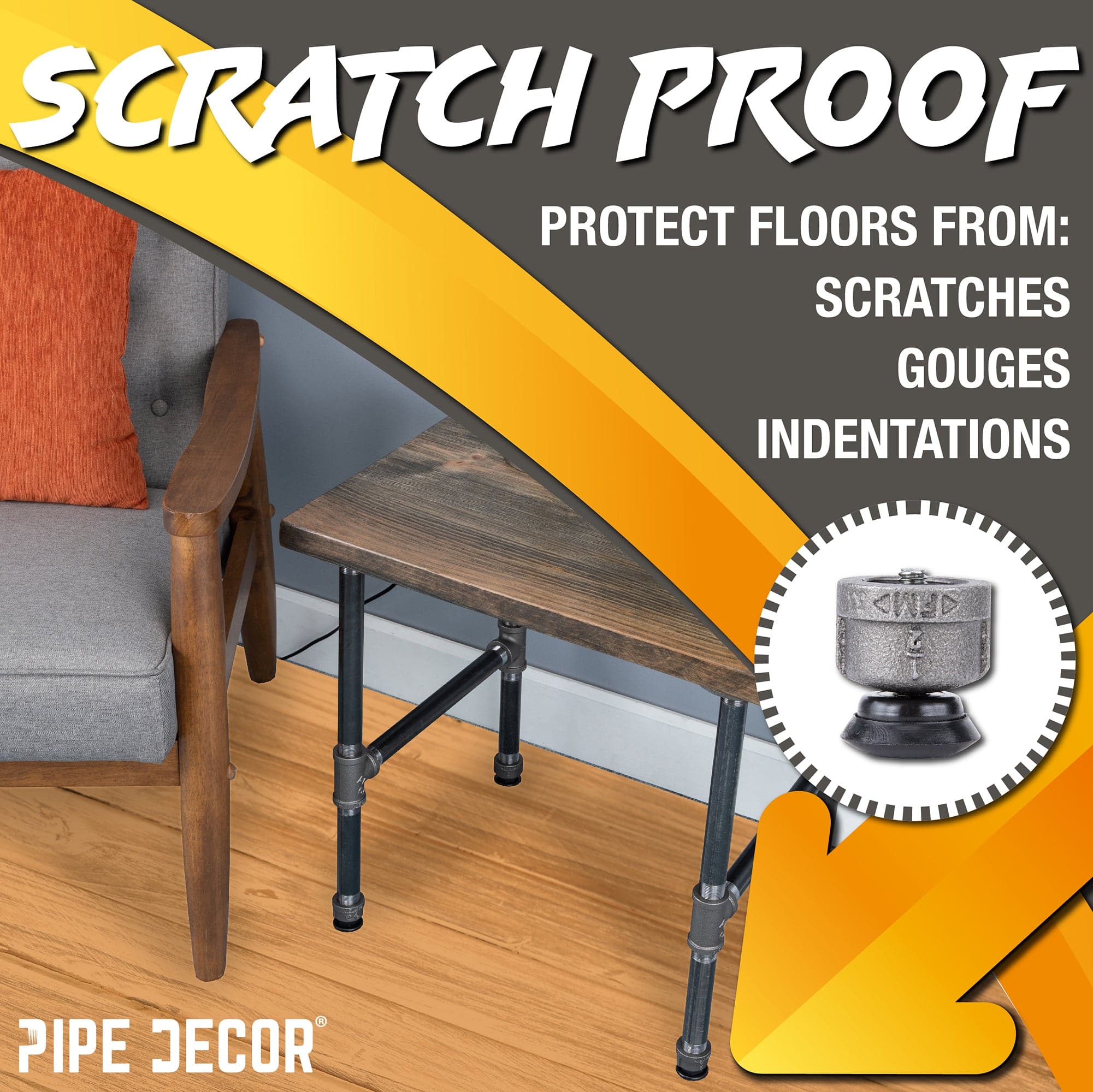 Levelers protect the floor from furniture legs that can scratch, gouge, or cause indentations. No more marring and scraping your floors when trying to rearrange your furniture. Furniture levelers help pipe furniture glide seamlessly across wood, tile, and linoleum flooring. Rearrange your furniture to achieve your perfect layout with little effort.