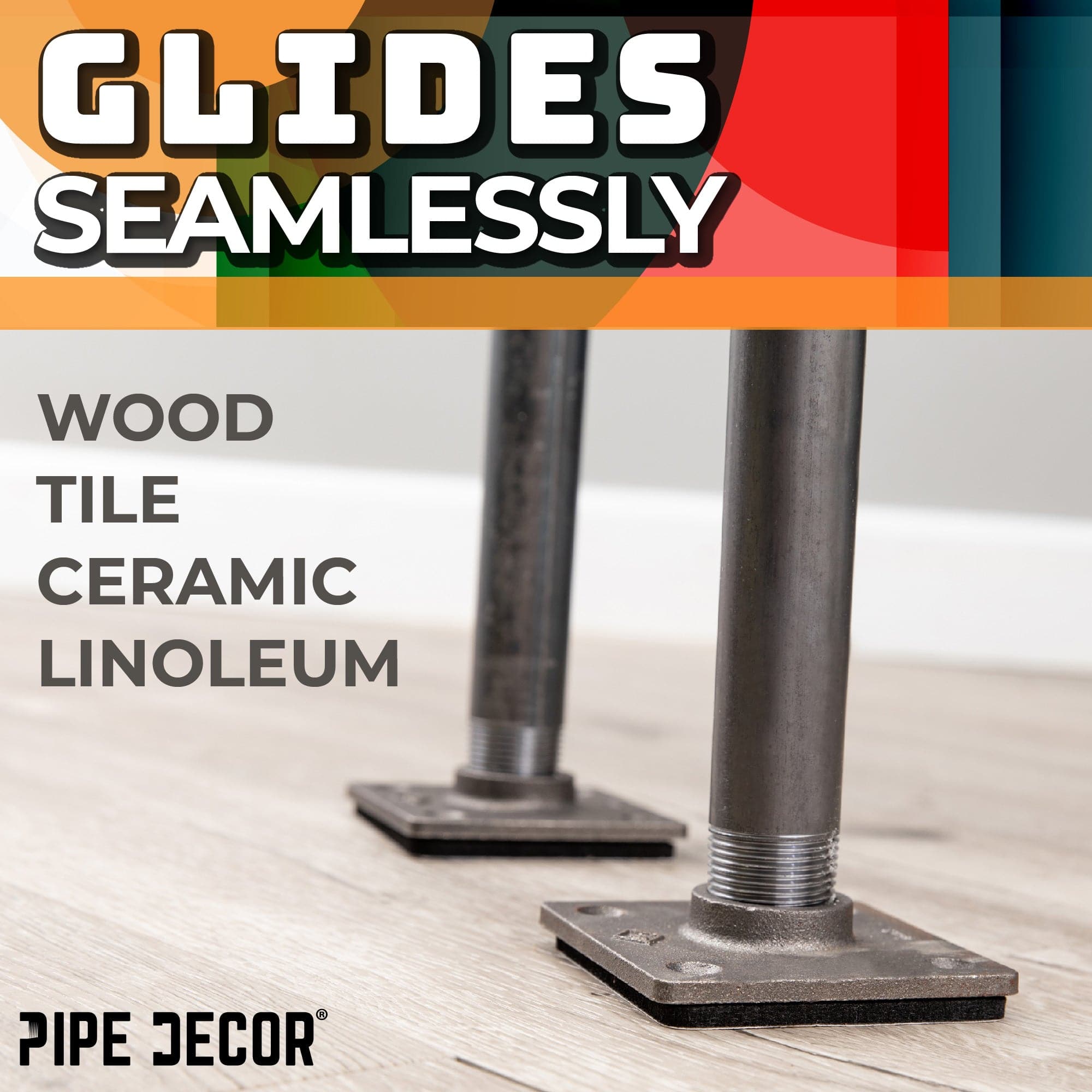 Take your furniture to the next level! Customize your pipe furniture with heavy duty felt pads that make rearranging your decor a breeze, part of our line of practical accessories that can make your furniture even better. Felt pads allow furniture to glide seamlessly across your flooring. The thick felt provides a heavy-duty barrier that saves your floors from scratches, gouging, and other damage. Our self-adhesive felt pads are also easy to apply. Once placed, they won’t slide around or leave a sticky residue.