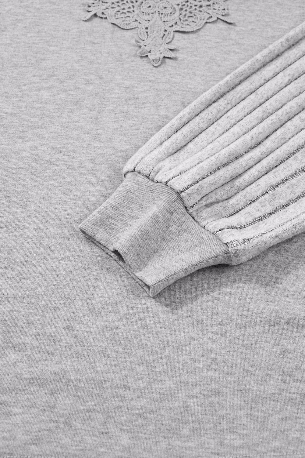 Hollow Lace Ribbed Knit Patchwork Long Sleeve Top ‐ Gray / S