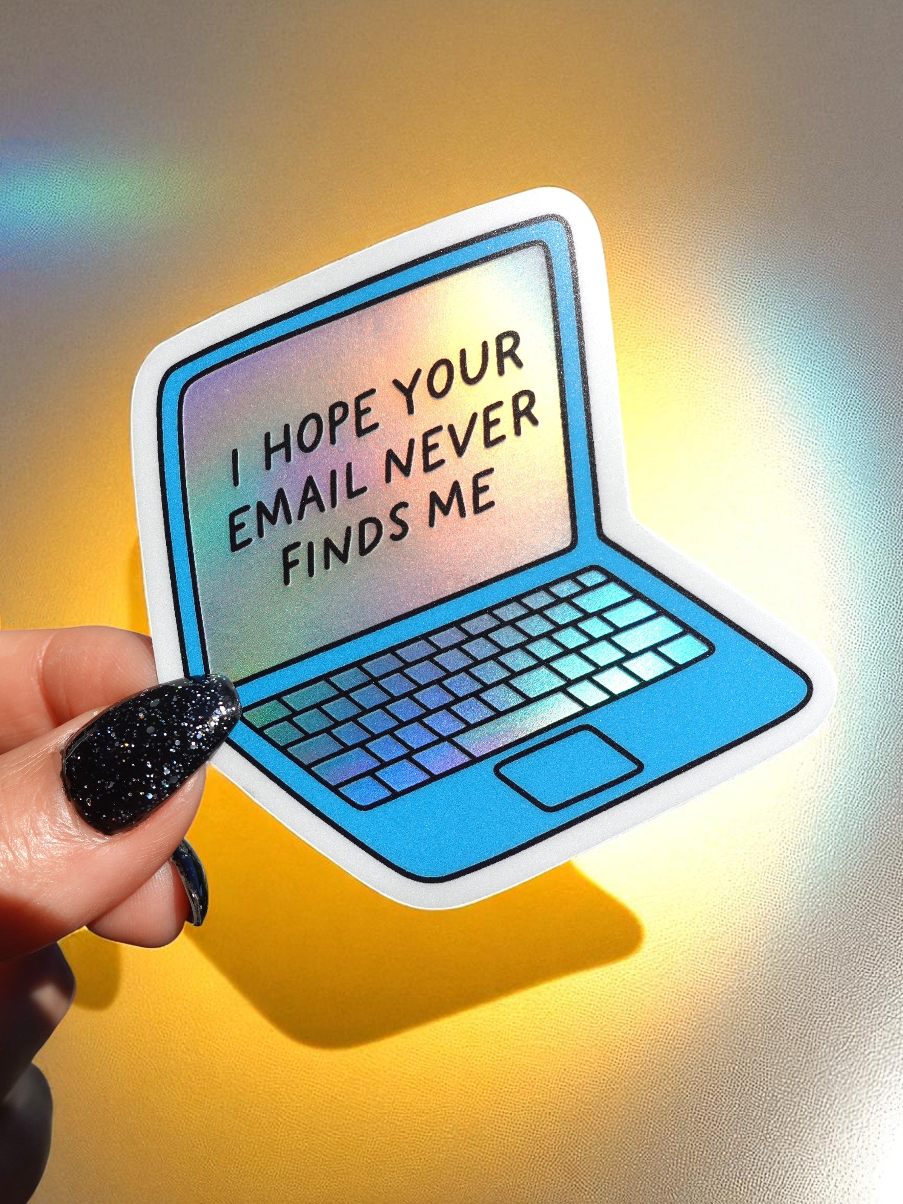 I Hope Your Email Never Finds Me Sticker – Holographic Laptop Vinyl – Funny Work from Home Burnout Humor