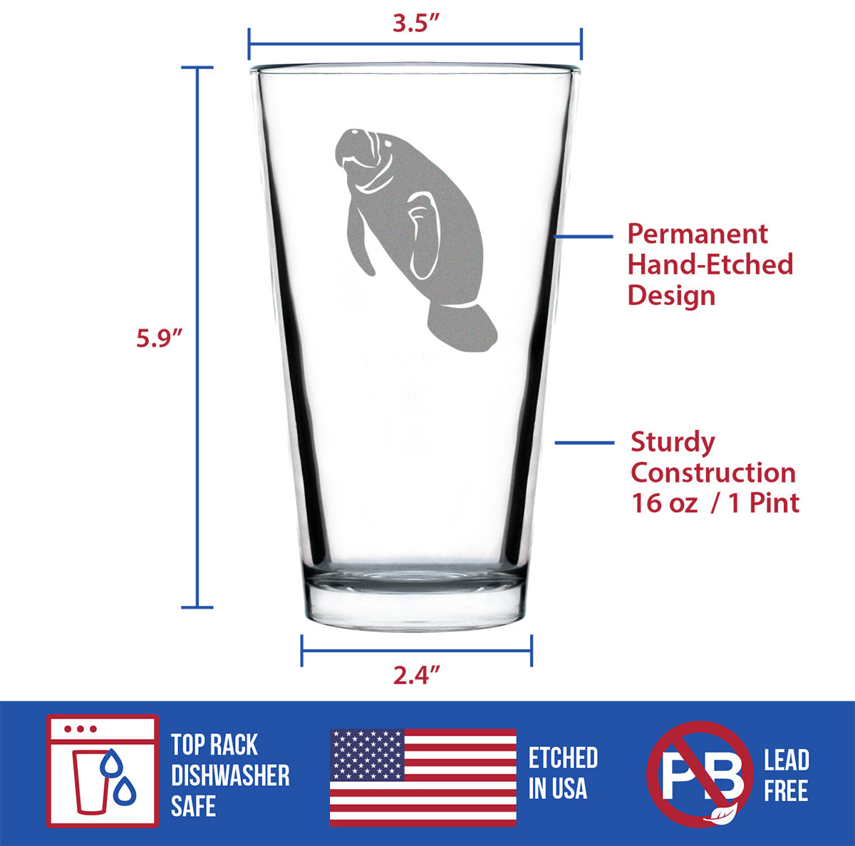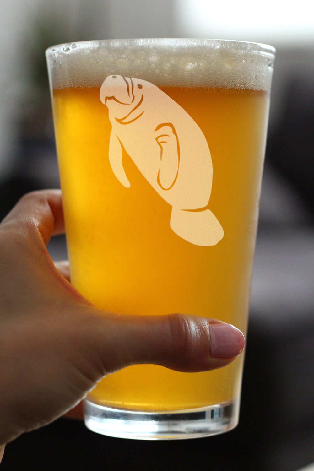 Manatee Pint Glass for Beer - Cute Funny Ocean Animals Themed Decor and Gifts for Sea Creature Lovers - 16 oz