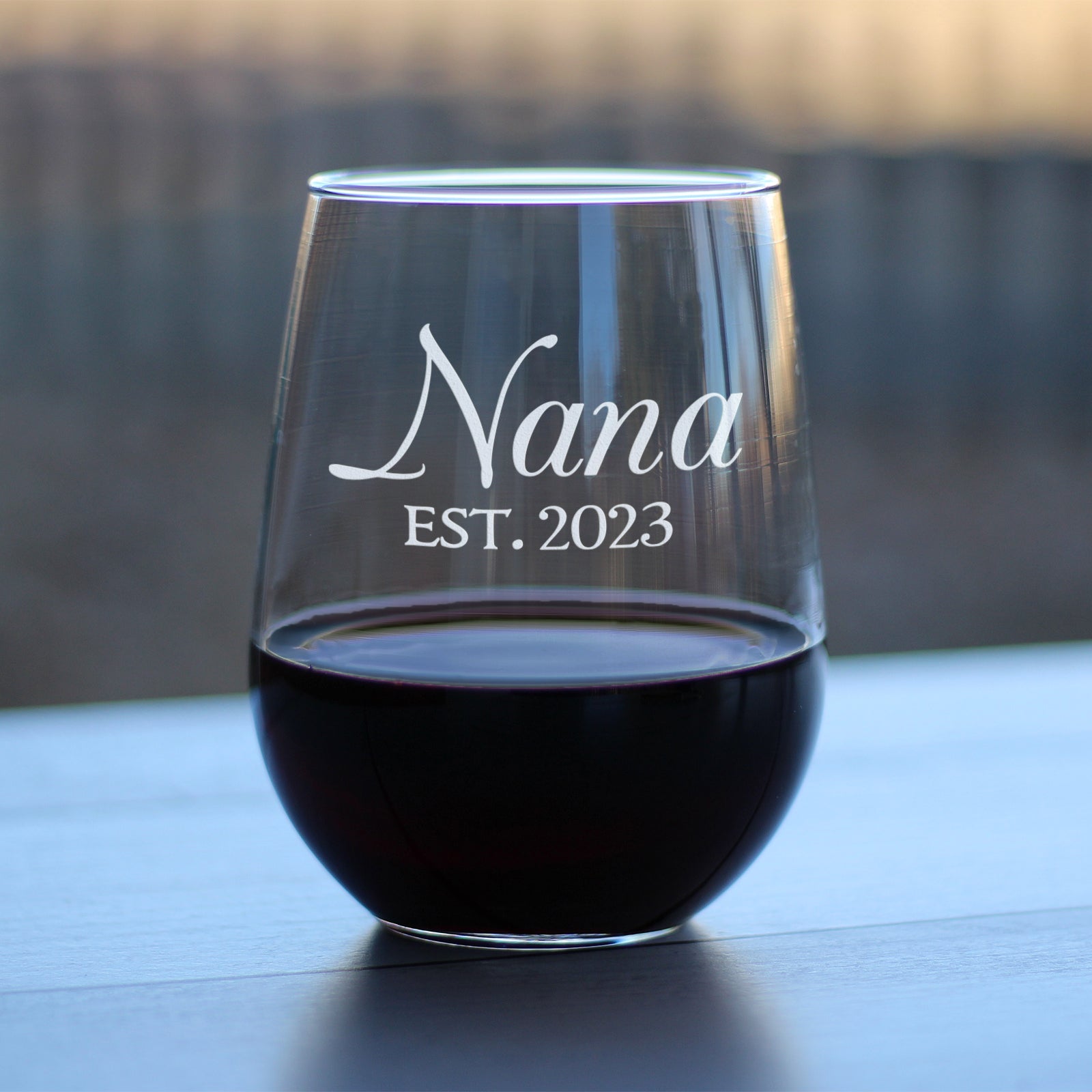 Nana Est. 2023 - No Swirls - 17 Ounce Stemless Wine Glass