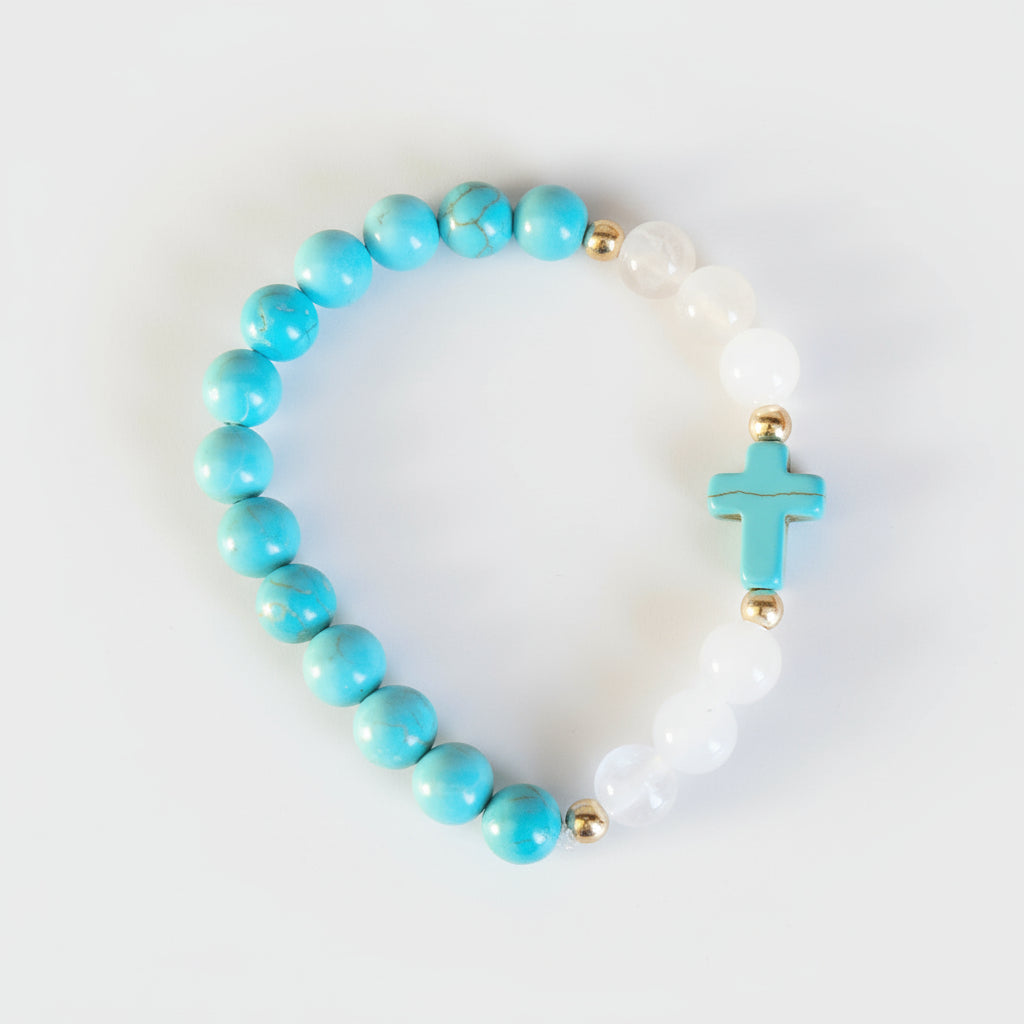 This boho stackable bracelet features a unique Natural Jade with Howlite Beads for a stylish and natural look. With its stretch design, it provides a comfortable and versatile fit for any wrist. Elevate your outfit with this one-of-a-kind accessory.