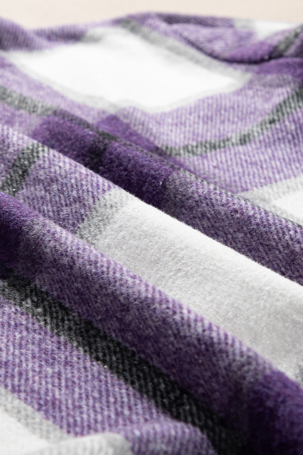 Plaid Button-Up Long Sleeve Pocketed Shacket ‐ Purple / L