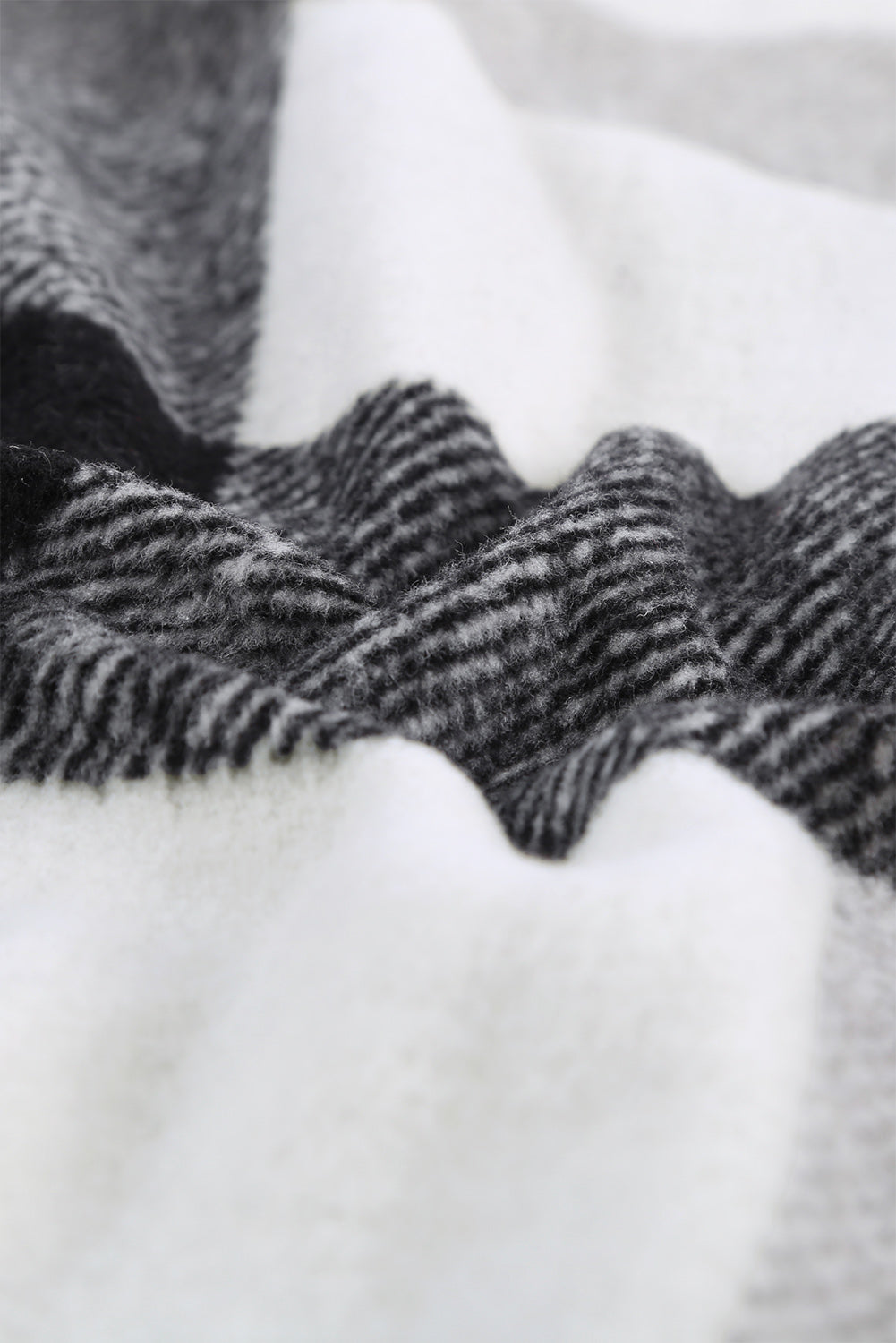 Plaid Button-Up Long Sleeve Pocketed Shacket ‐ Gray / XXL