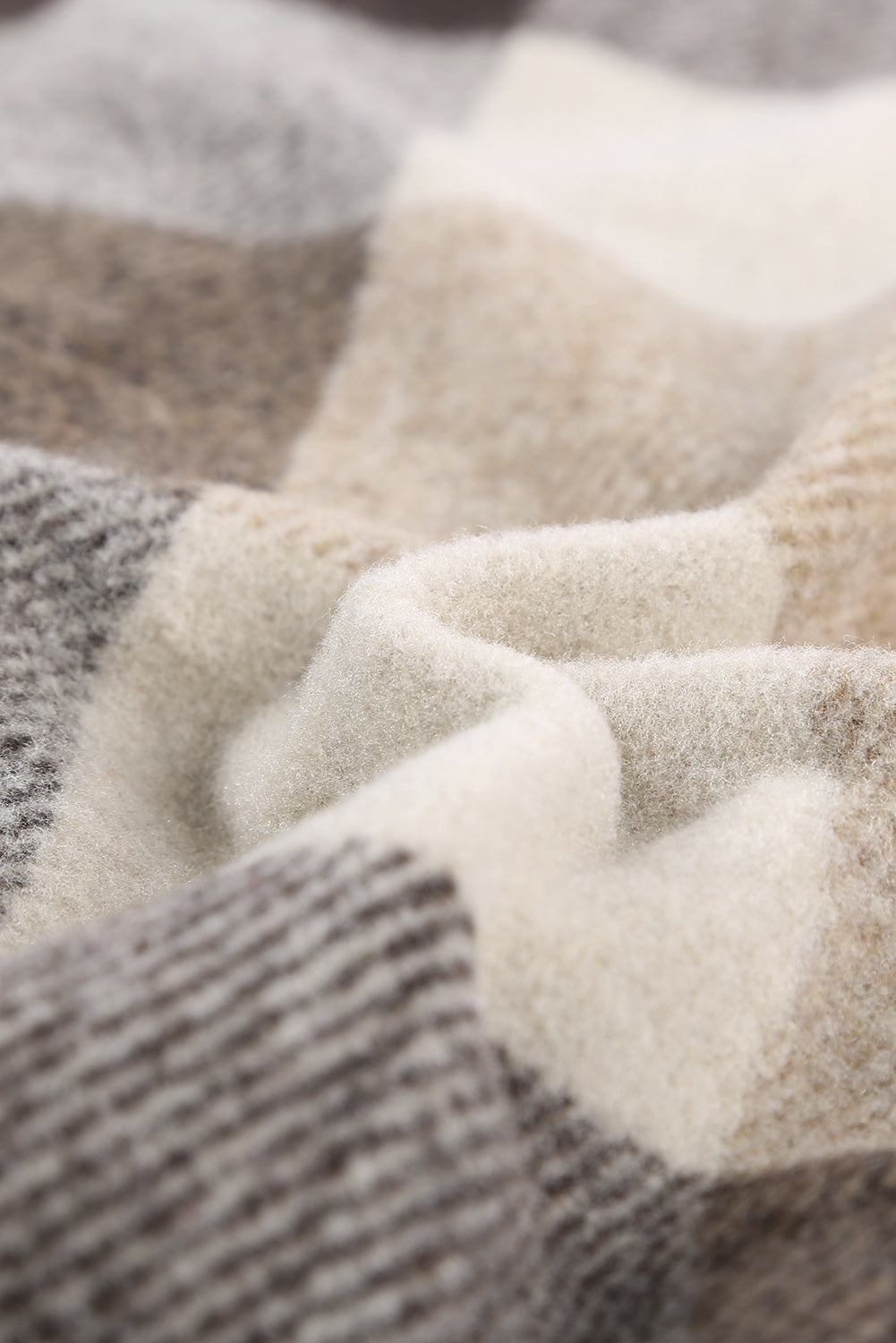 Plaid Button-Up Long Sleeve Pocketed Shacket ‐ Khaki / XXL
